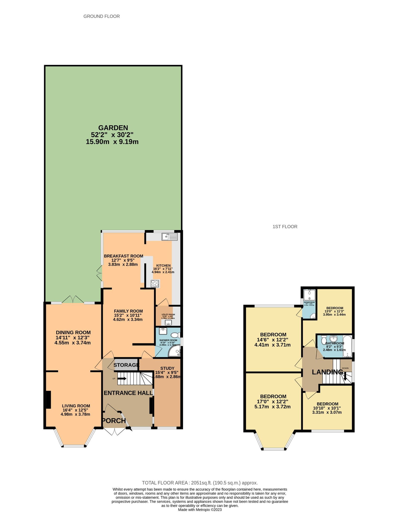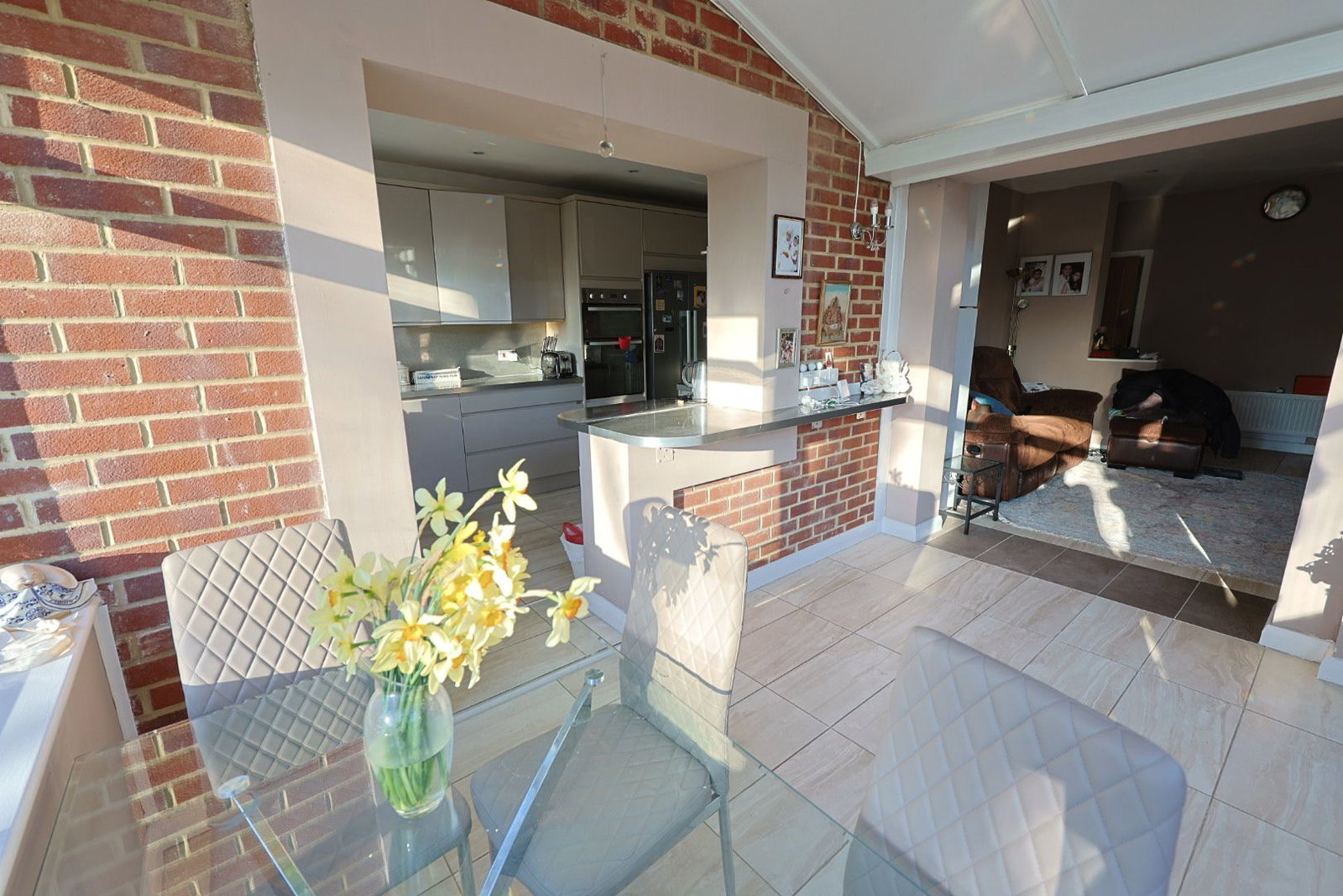Accommodation comprises living room, open to dining room, a family room leading to breakfast room, four first-floor bedrooms, two bathrooms, and a further bedroom/study on the ground floor.