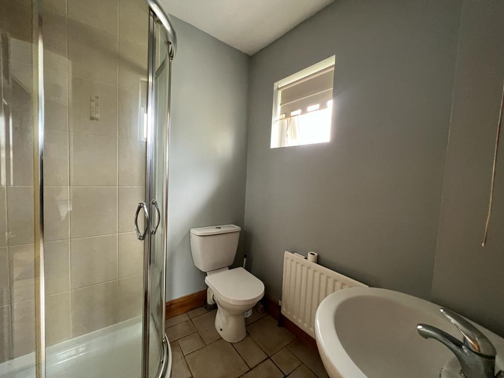 Comprising fully tiled walk in shower, whb and wc, tiled floor.