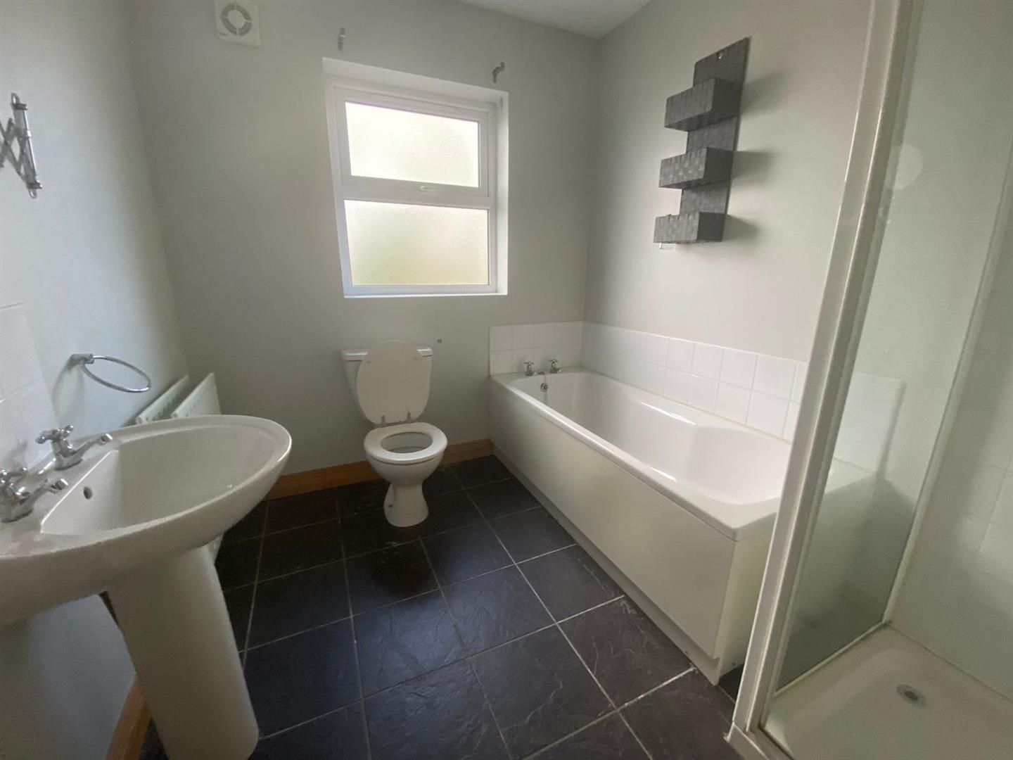 Comprising bath, walk in shower, whb and wc, tiled floor.