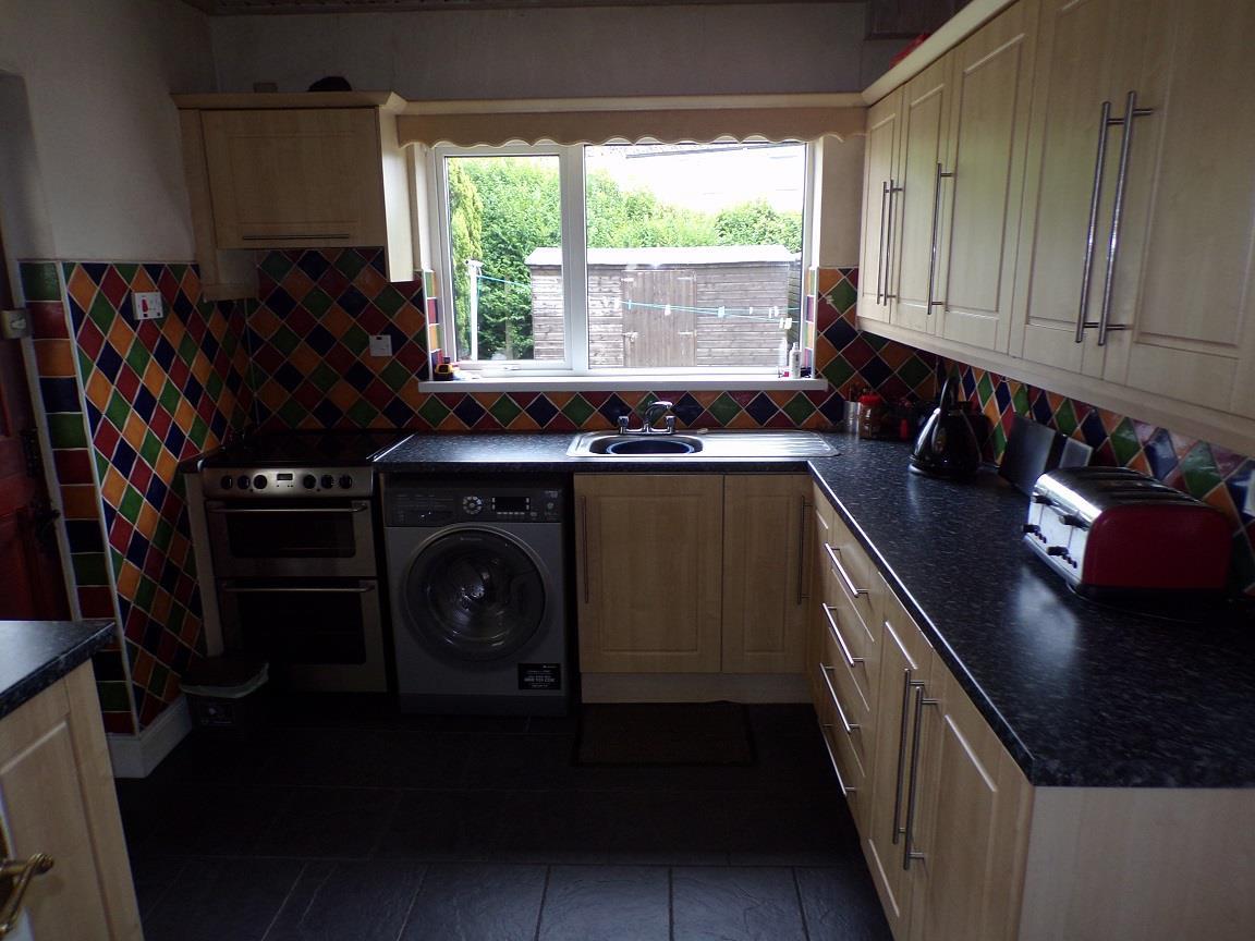 3.28m x 2.69m (10'9" x 8'10") - Having range of eye and low level units, tiling between units, single drainer stainless steel sink unit with mixer taps, plumbed for washing machine, wired for cooker, extractor hood, space for fridge / freezer, tiled floor.