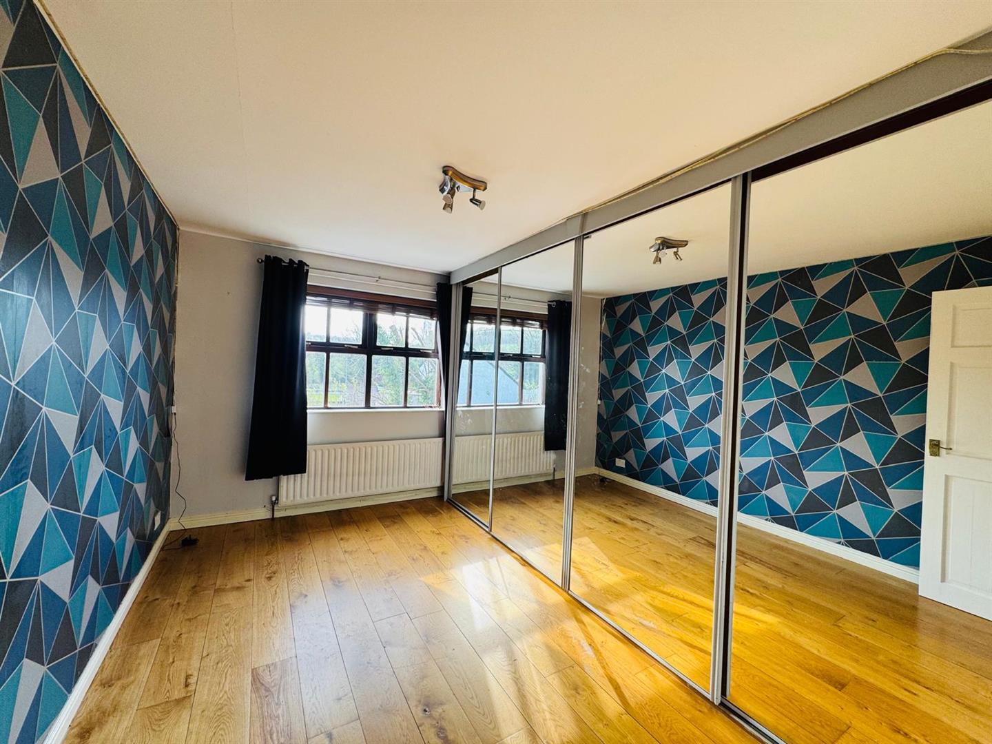 4.27m x 3.20m into wardrobe (14' x 10'6" into ward - Having wall to wall units with sliding mirrored doors, feature panelled wall, wooden floor.