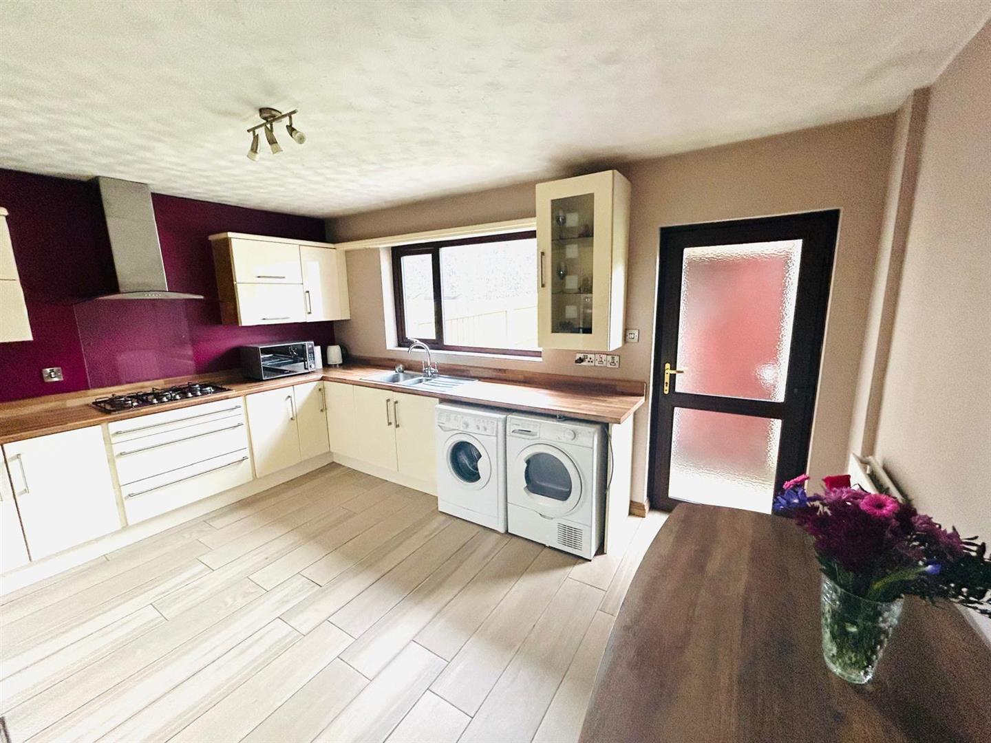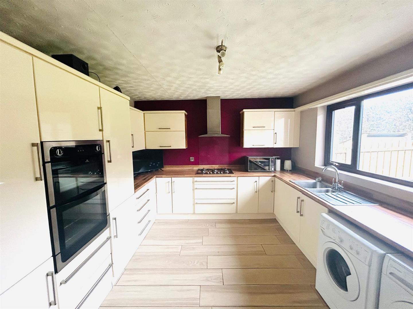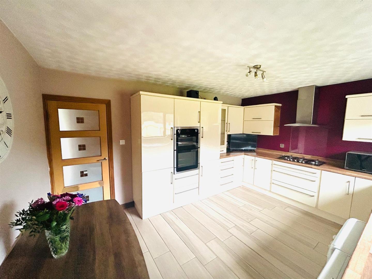 4.55m x 3.05m (14'11" x 10') - Having excellent range of eye and low level units, 1 1/2 bowl stainless steel sink unit with mixer taps, 5 ring gas hob, double electric oven, stainless steel extractor hood, plumbed for washing machine, space for tumble dryer, integrated fridge / freezer, tiled floor.