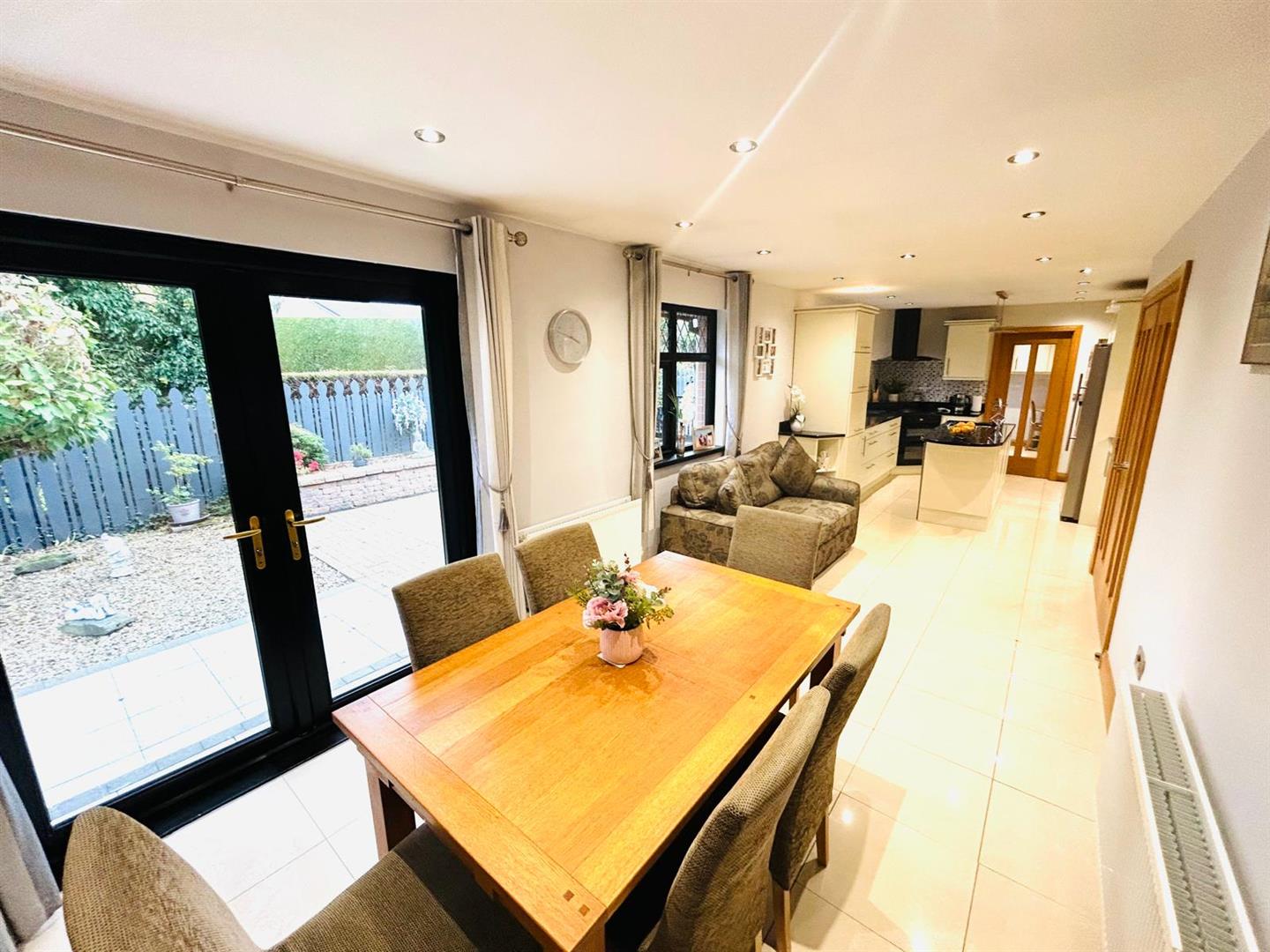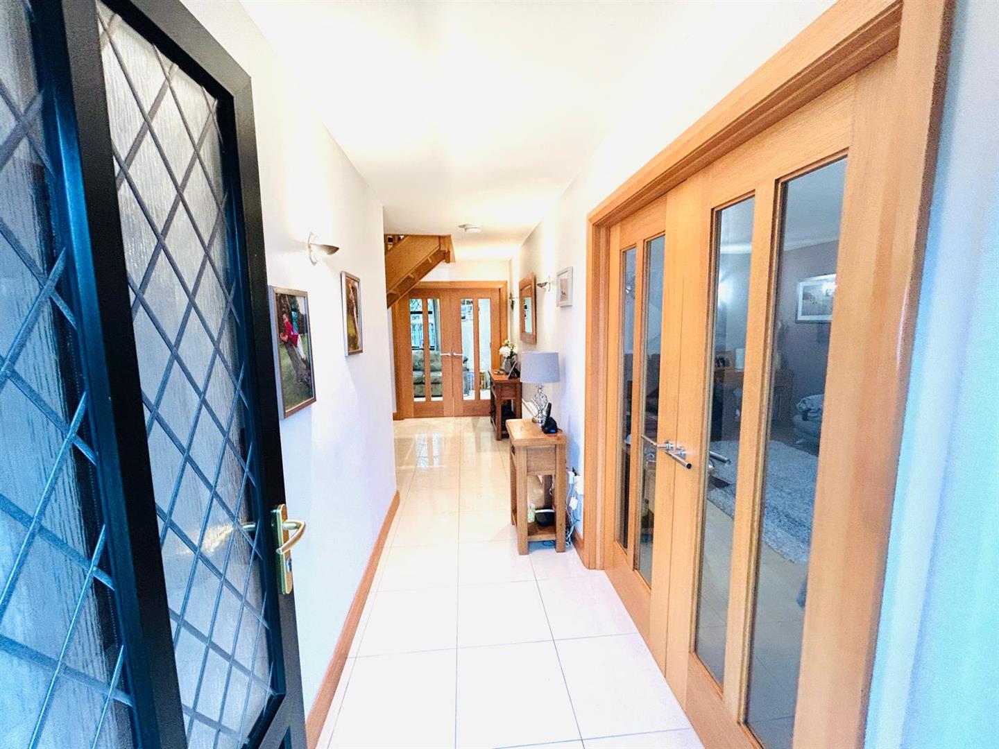 Having double doors to lounge, double doors to kitchen, tiled floor. Open staircase to first floor.