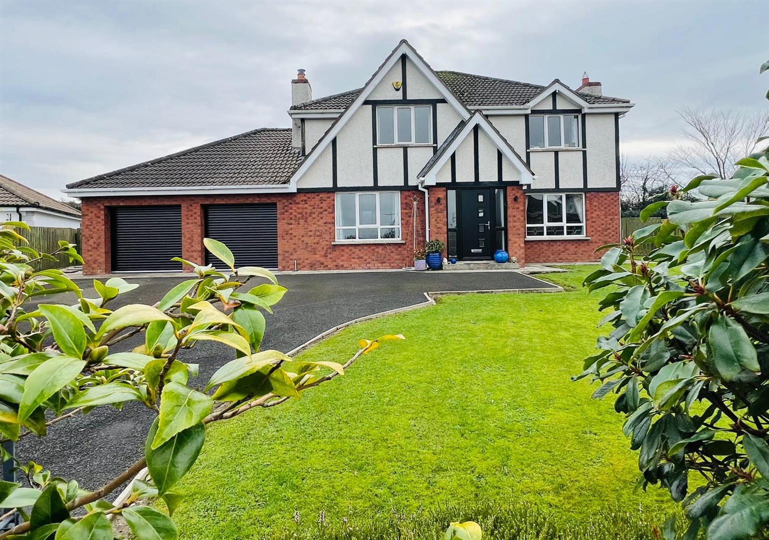This magnificent family home is located in the highly sought after Eglinton village. It sits proud on a generous plot at the end of a cul-de-sac and is approached by double entrance gates and tarmac driveway.