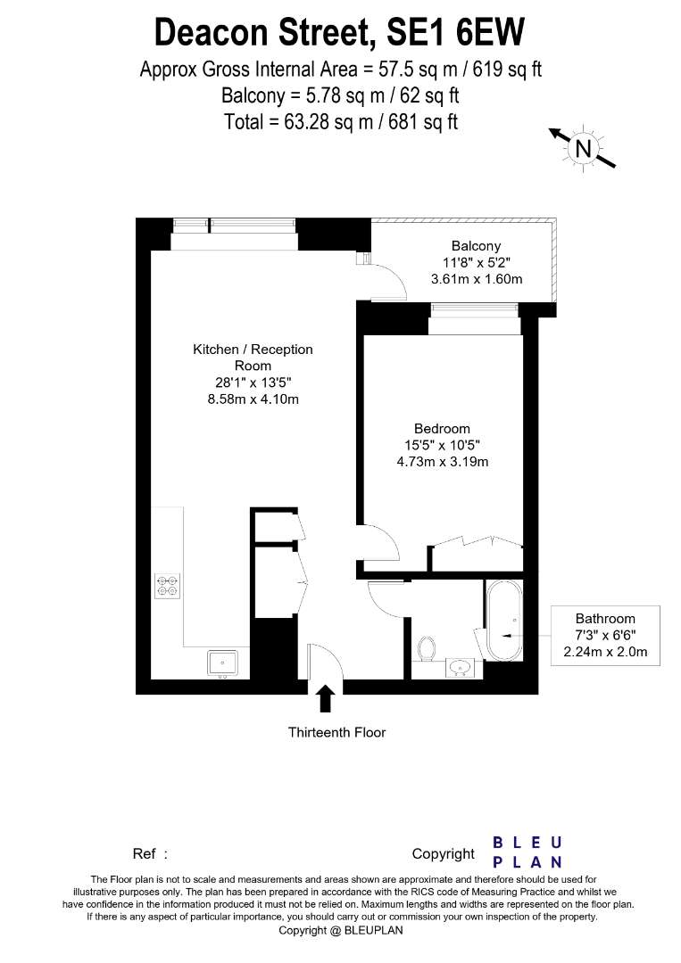 - Large one bedroom apartment set on the 13th Floor