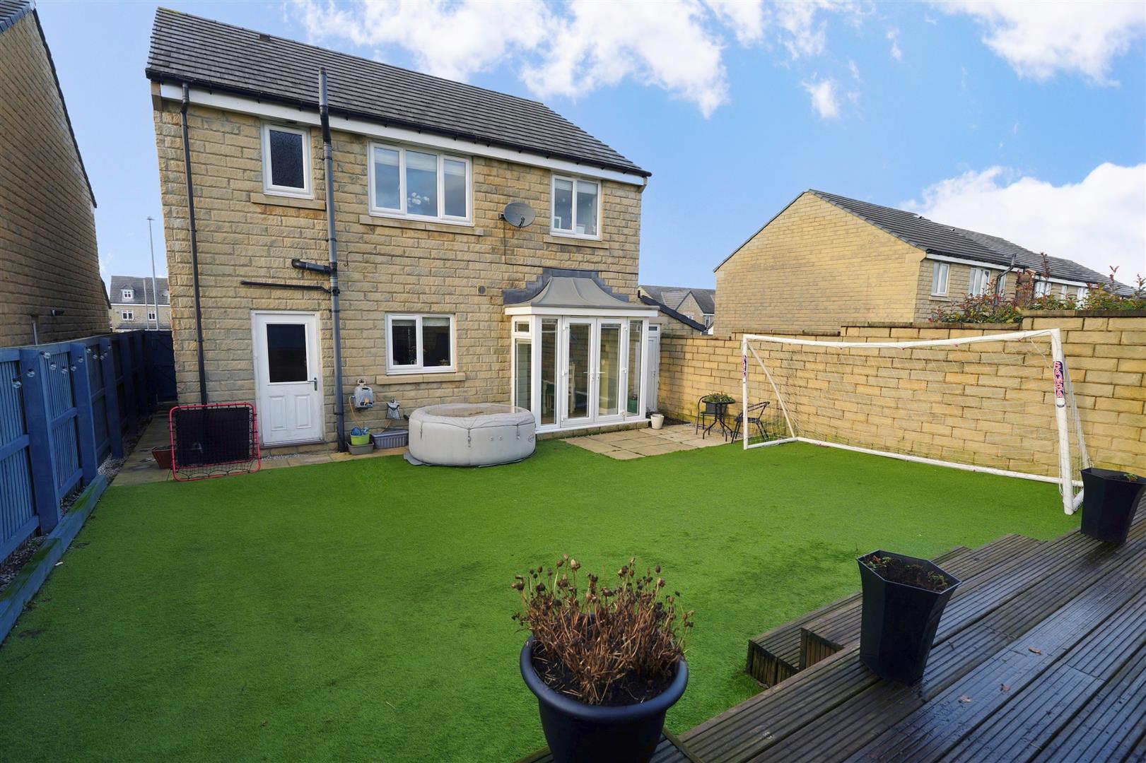 Located within a desirable residential development with easy access to the M62, this well maintained and attractively presented four-bedroom executive detached home offers generous and versatile accommodation ideal for modern family living. The property features a modern dining kitchen, complemented by a separate utility room and ground floor cloakroom, while a garage conversion provides a well-proportioned additional reception room, ideal for a home office, playroom, or secondary living space. To the first floor are four double bedrooms, including a spacious master bedroom with en-suite and dressing area. Externally, the property enjoys a landscaped rear garden with artificial lawn and both decking and patio seating areas, further benefiting from secure brick-built storage with power and lighting. An excellent opportunity for buyers seeking an executive family home in a well-connected location, with early viewing highly recommended.