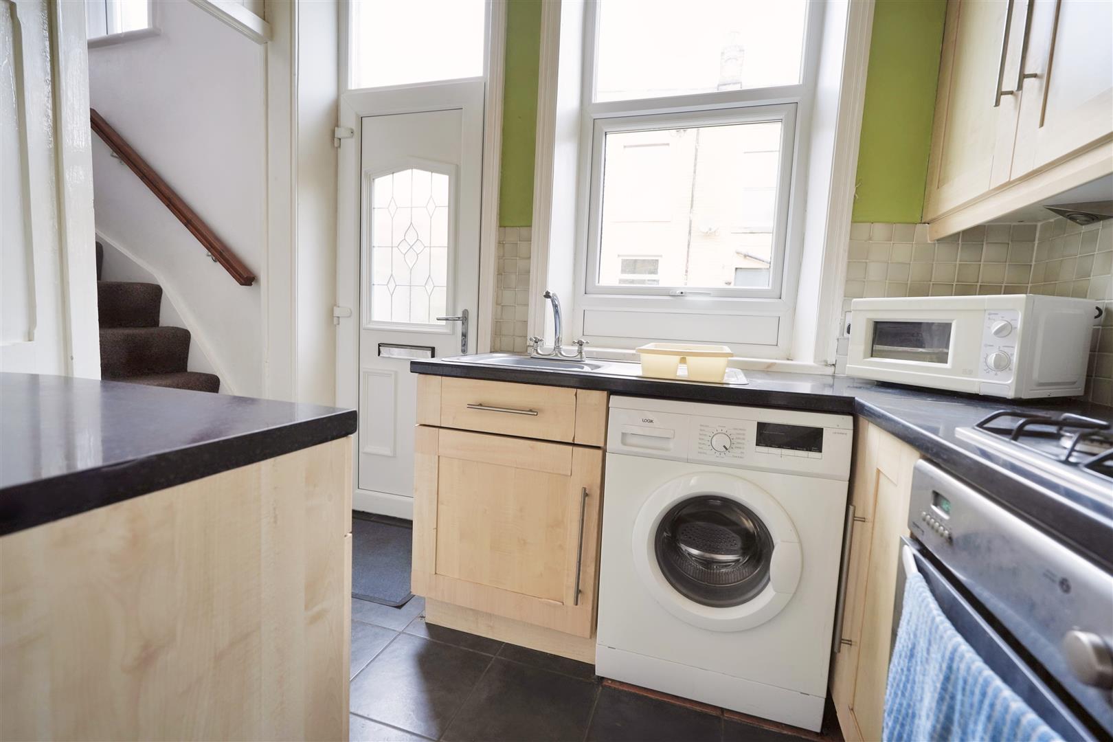 Kitchen - 1.883 x 3.001 (6'2" x 9'10") - Fitted kitchen. Stainless steel one bowl sink. Electric oven. Gas hob. Cooker hood. UPVC double glazed door to rear elevation.
