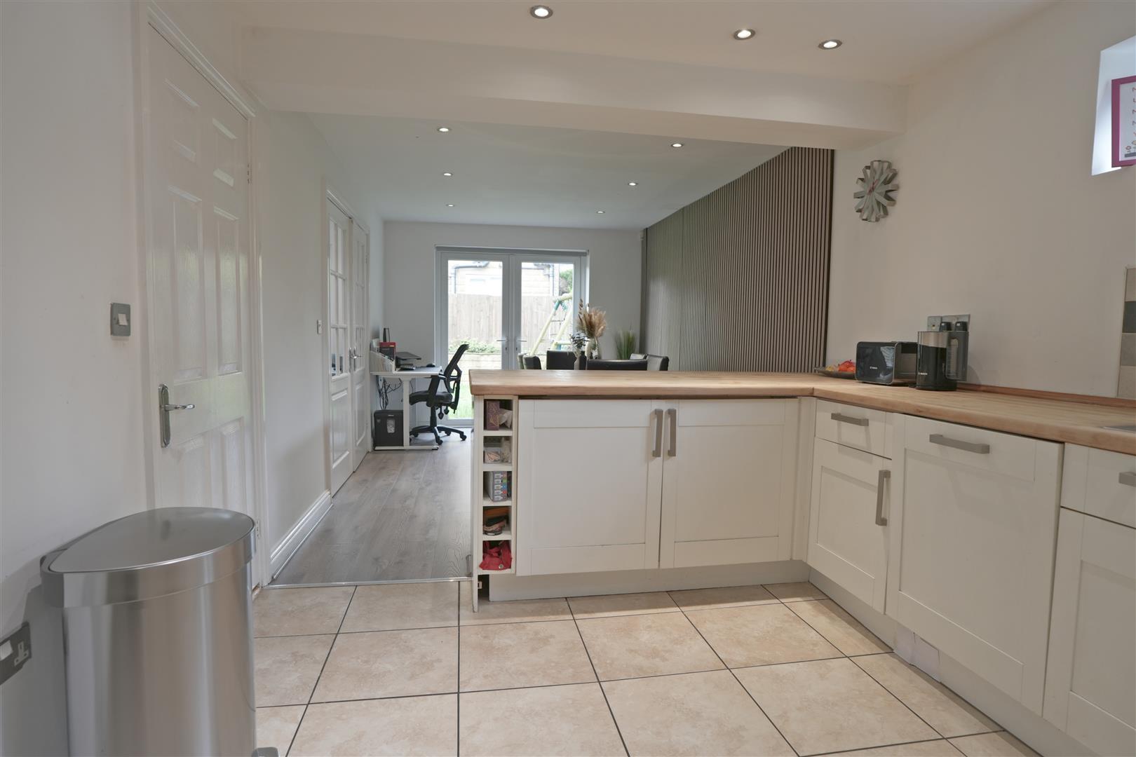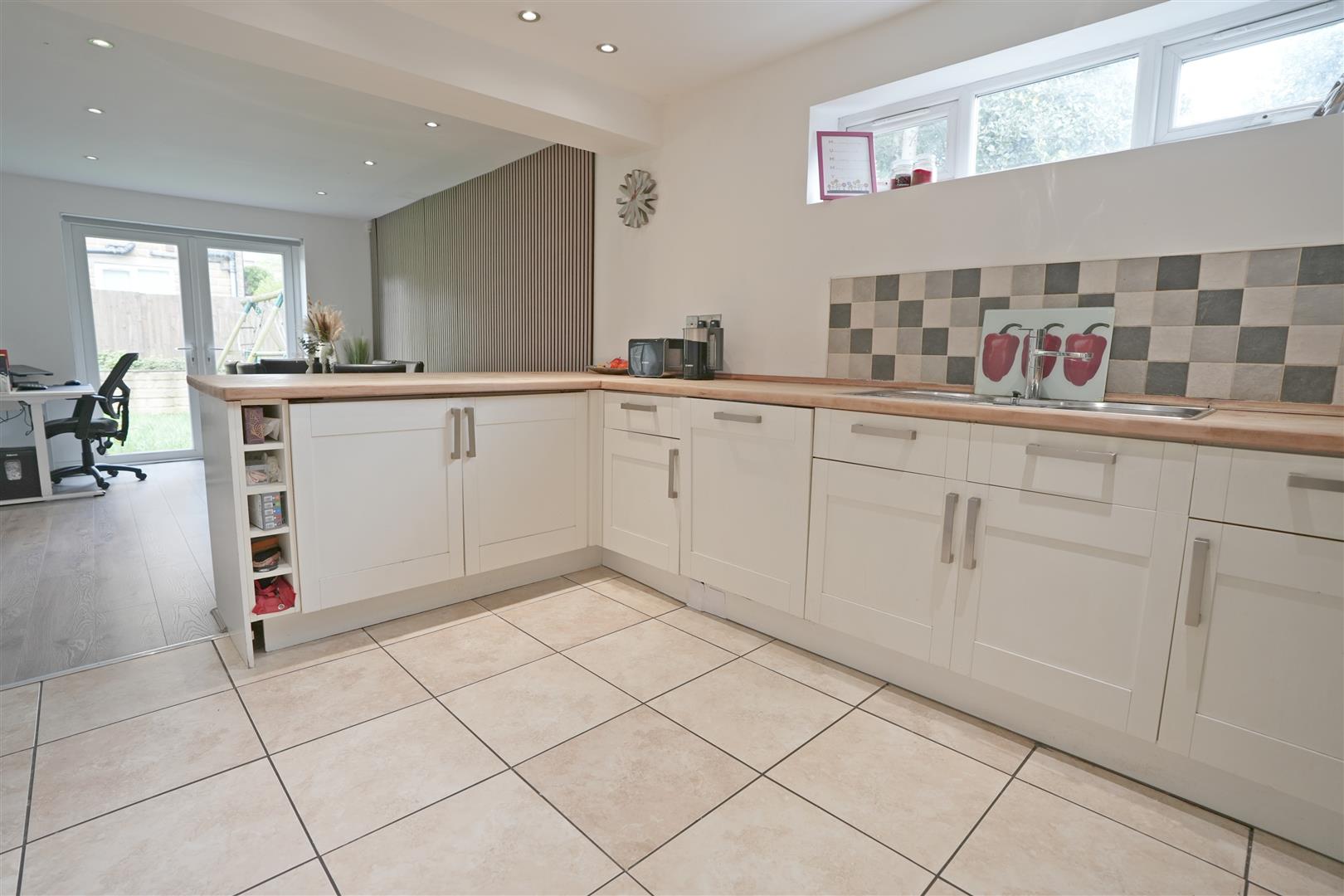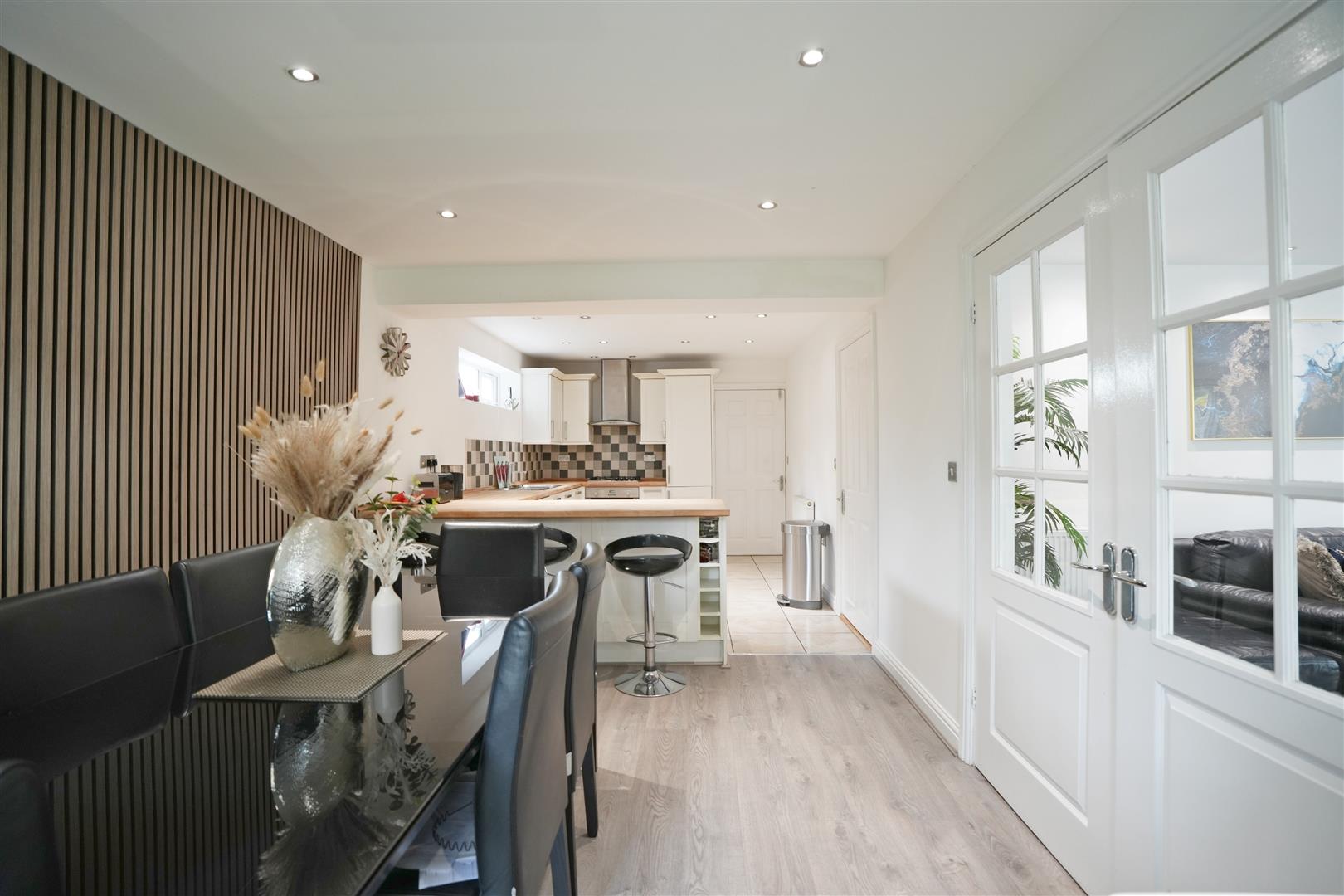Dining Kitchen - 2.940 x 7.952 (9'7" x 26'1") - Fitted kitchen with wall and base units. Stainless steel one and a half bowl sink. Electric oven. Gas hob. Stainless steel and glass cooker hood. Integrated dishwasher. Integrated fridge / freezer. Two radiators. UPVC double glazed French doors to rear elevation. UPVC double glazed window to rear elevation.