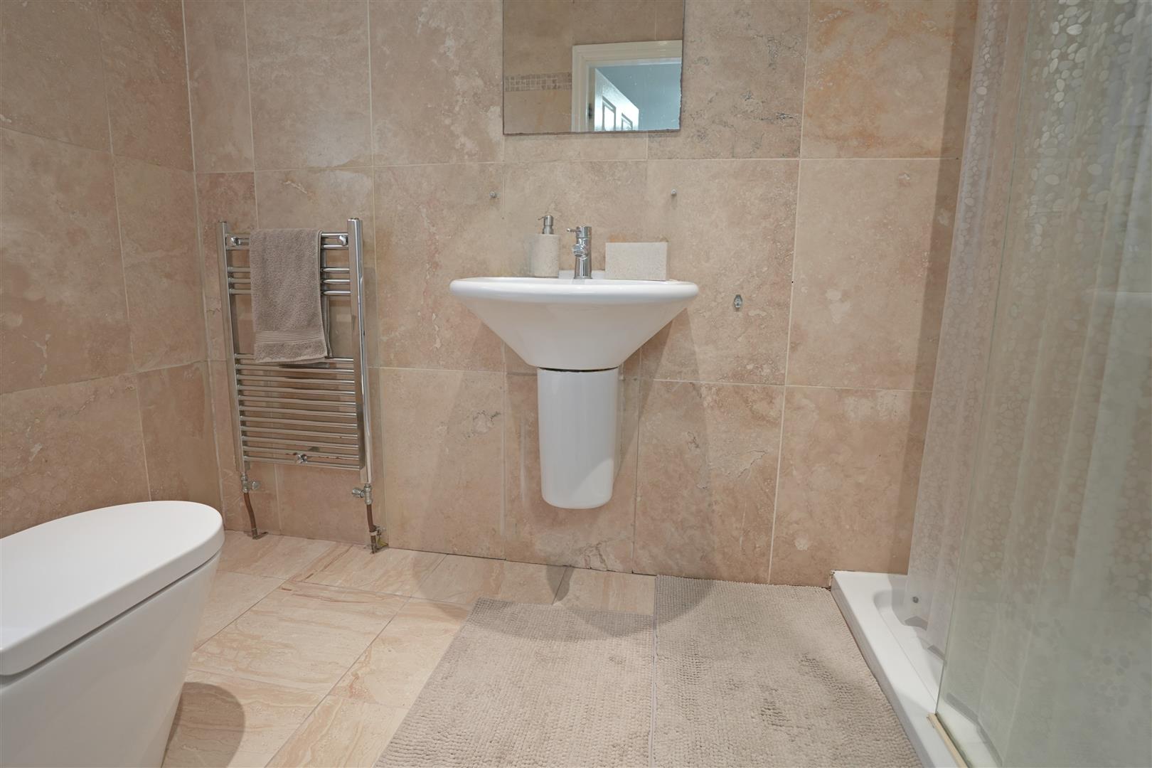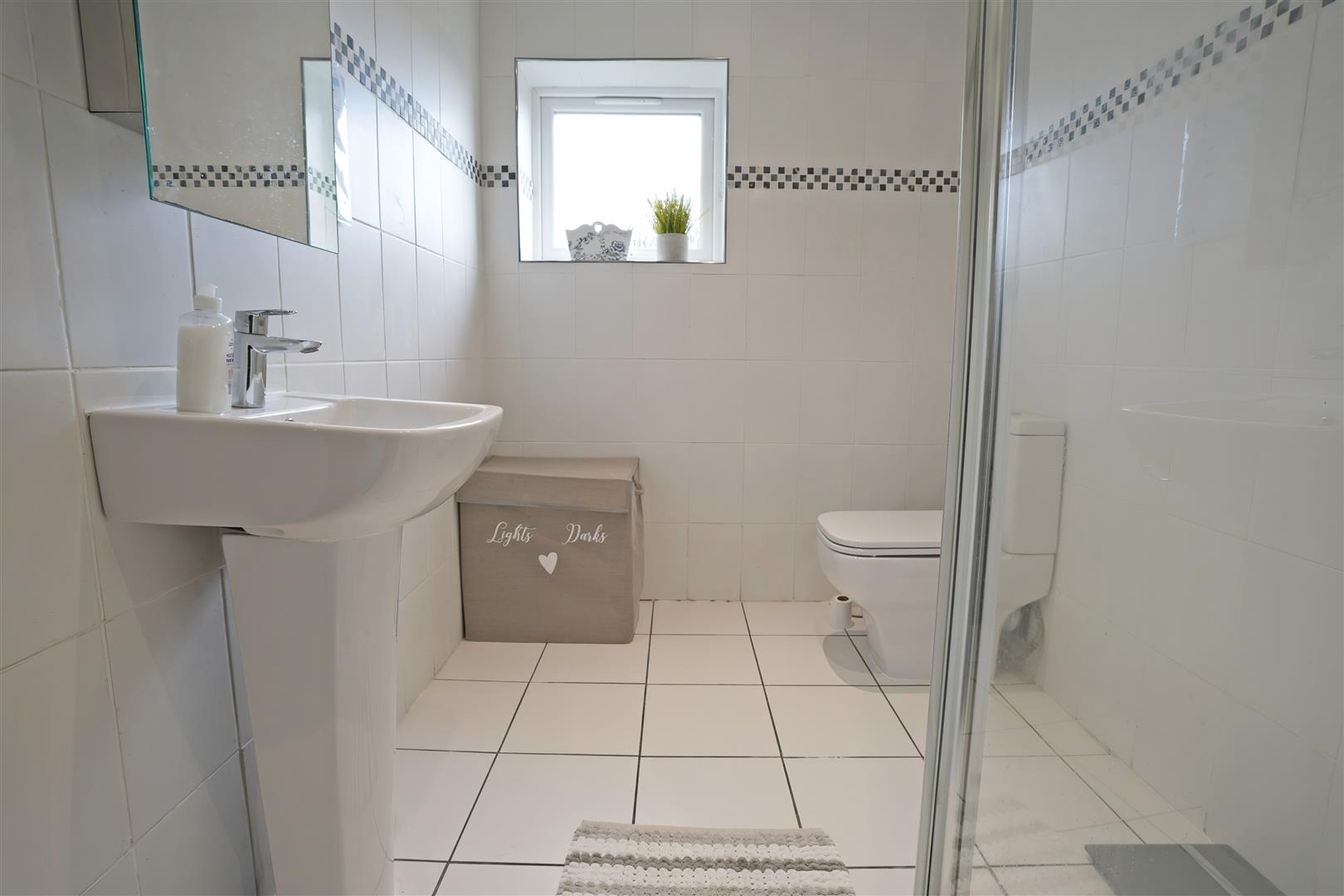 En-Suite - Wash hand basin. Low flush W.C. Shower cubicle. Fully tiled. Chrome towel radiator. Extractor fan. UPVC double glazed window to rear elevation.
