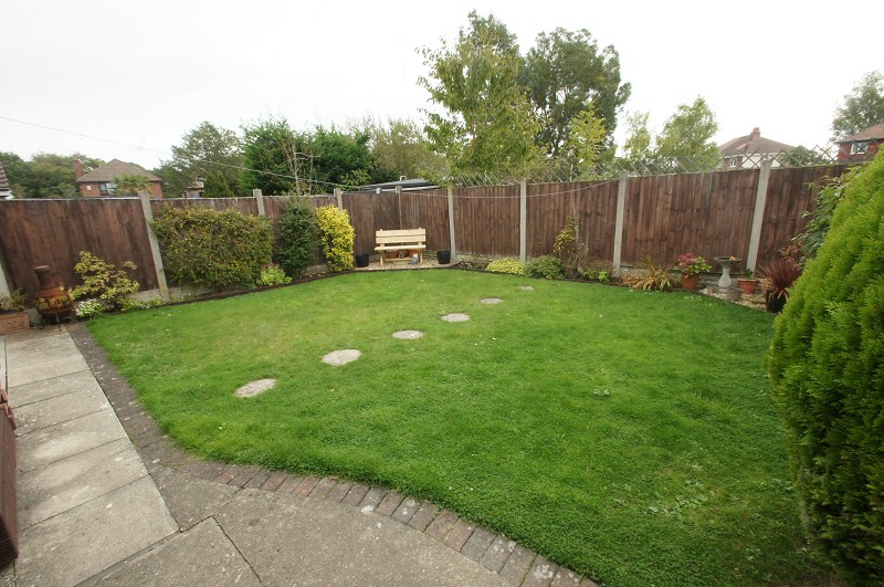 Good sized rear garden area with southerly aspect, mainly laid to lawn featuring patio area accessible from either lounge or kitchen