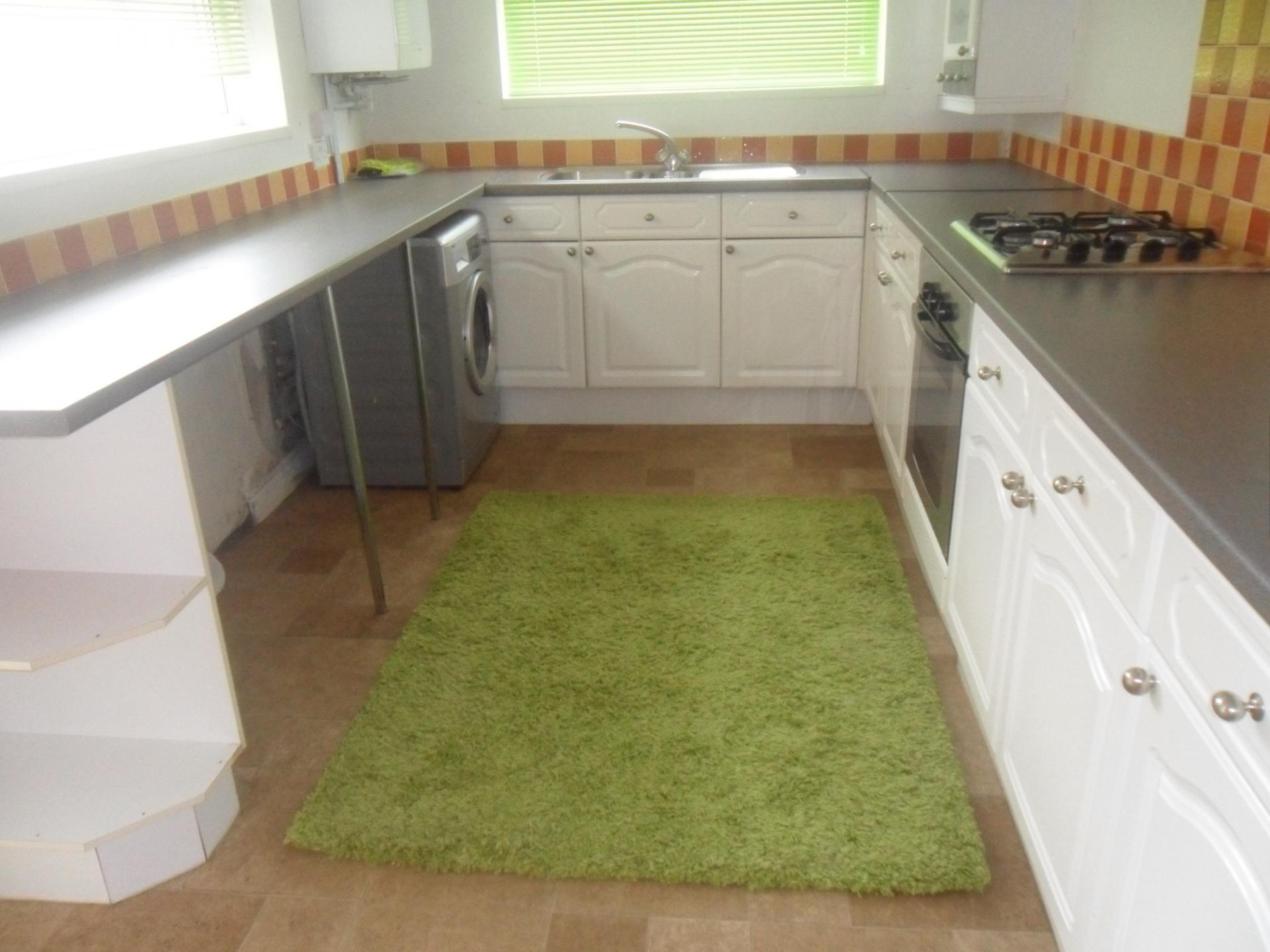 The kitchen has been fitted with a range of units having white high gloss fascia and grey speckled working surfaces comprising 8 base units and 6 wall mounted units including glass fronted unit. 11/2 bowl single drainer stainless steel sink unit with window above. Built-in gas hob and electric oven with stainless steel extractor fan above. Plumbed for a washing machine. Space for fridge/freezer. Double radiator. Storage area understairs. Aluminium fully double glazed door to rear area.