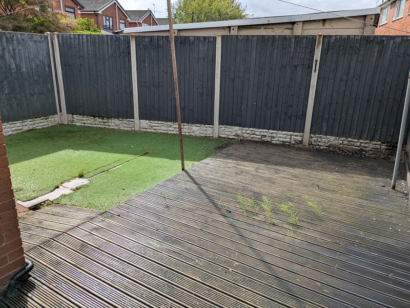 * Attractive rear garden with decking and artificial lawn