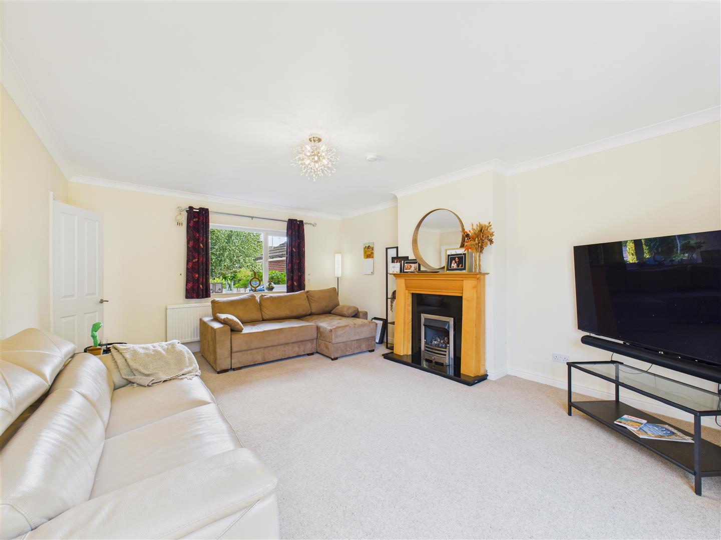 Outside, the home is set on a good-sized plot. The front features an extensive driveway providing ample parking and leading to the double garage, which includes a convenient EV charging point. The rear garden enjoys a southerly aspect, combining a patio, a well-maintained lawn, ornamental borders, and mature boundary hedging, creating an inviting outdoor space. No onward chain.