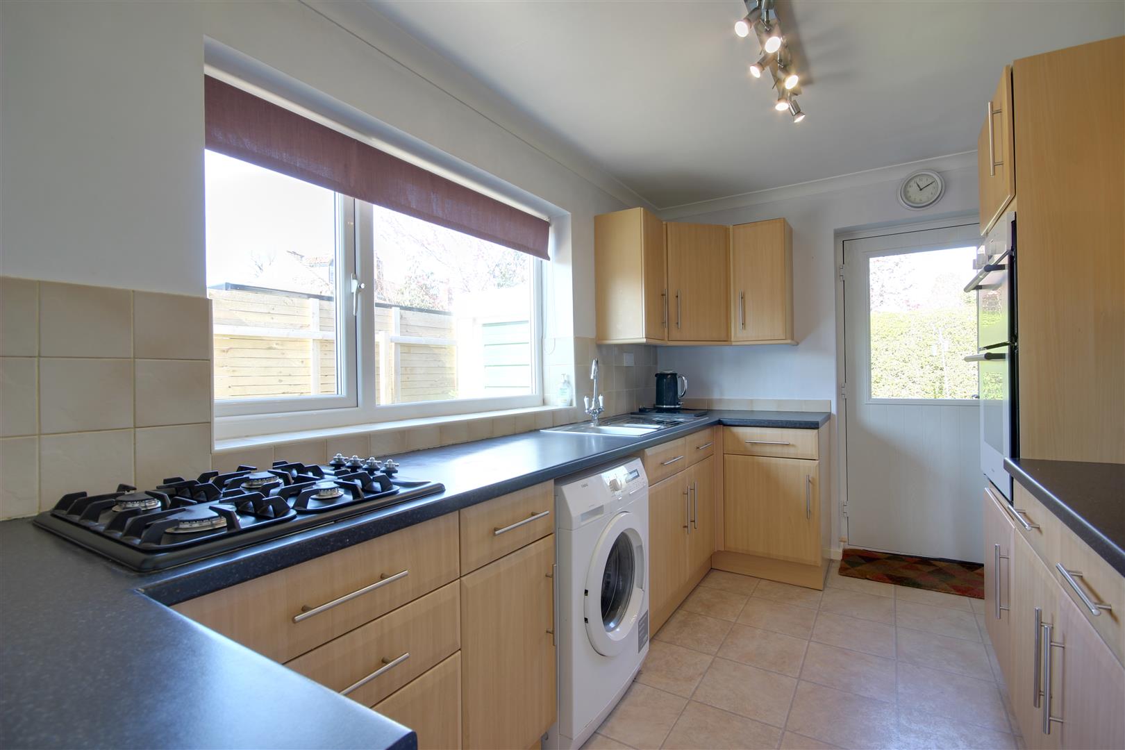 Kitchen - 3.96m x 2.34m approx (13'0" x 7'8" approx) - Having a range of fitted base and wall units, roll top work surfaces, sink and drainer integrated double oven, four ring gas hob, plumbing for automatic washing machine, wall mounted Ideal gas fired central heating boiler. Window to side, external access door to rear.
