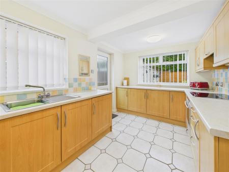 Kitchen - A good sized kitchen with fitted base and wall mounted units to four walls. Features include a sink and drainer, integrated Neff oven, hob and extractor hood, fridge, freezer and concealed washing machine. Tiling to the floor, windows to side and rear elevations and an external door out to the driveway.