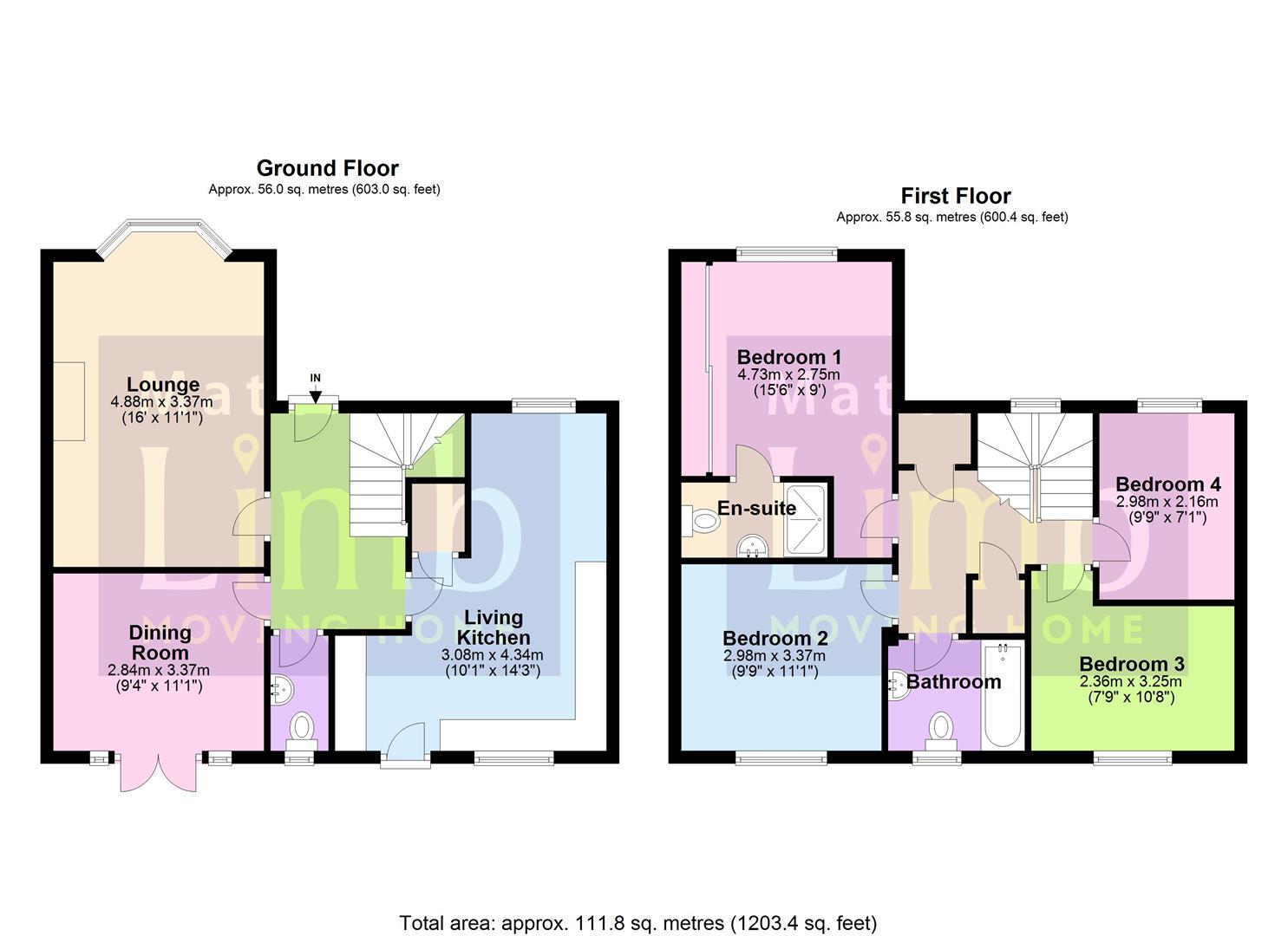 The ground floor features a central hallway, a practical cloaks/W.C., and flexible reception spaces, including a spacious lounge and a separate sitting room. The heart of the home is the contemporary-styled living kitchen, ideal for everyday dining and socialising. The first floor provides four bedrooms, including the impressive main bedroom, which is a particular feature due to its vaulted ceiling and dedicated en-suite shower room. A separate house bathroom serves the remaining rooms.