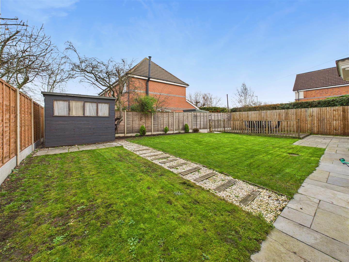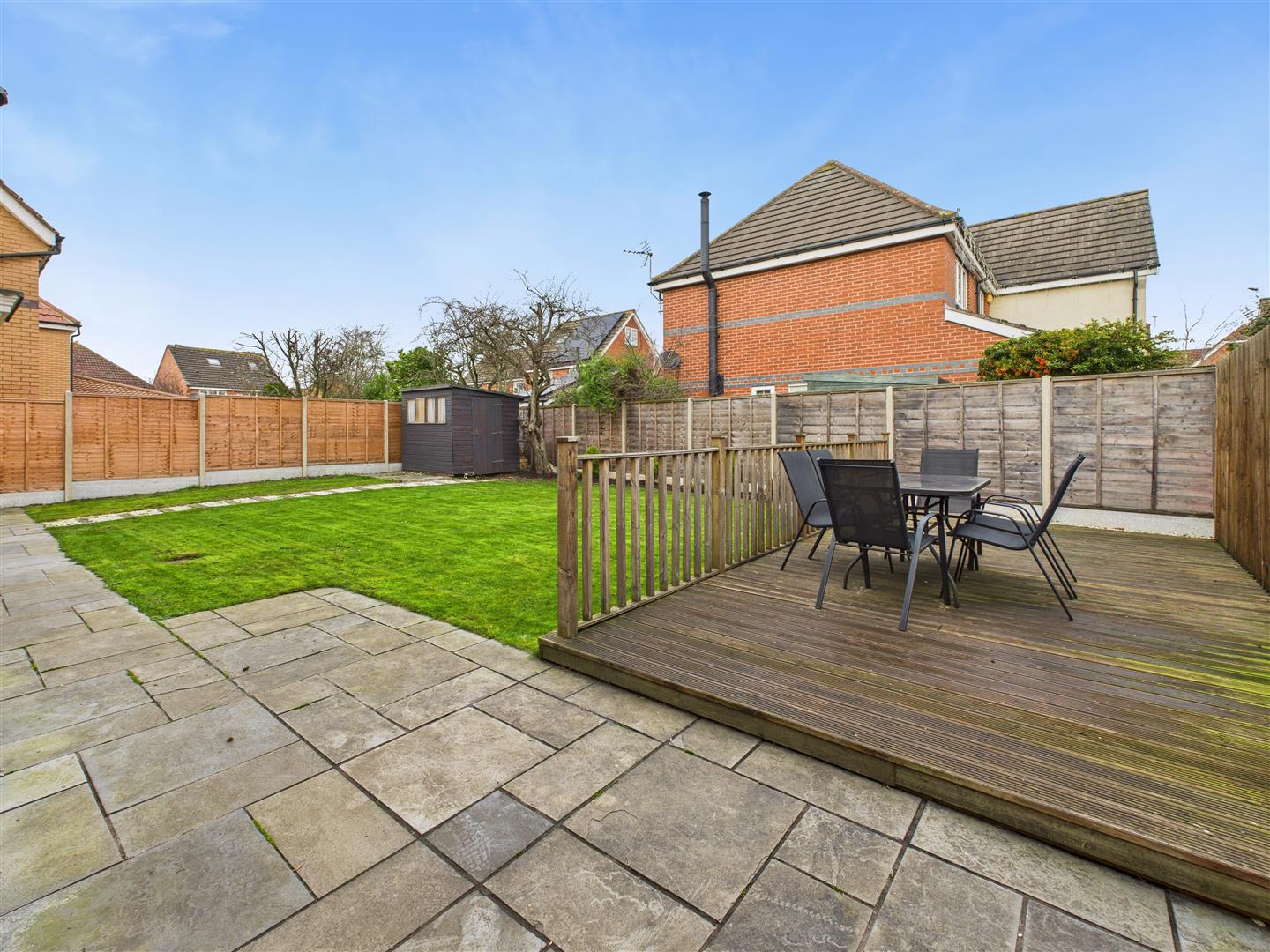 Outside - Externally, the property boasts a driveway offering parking for multiple vehicles and access to the garage. The rear garden is notably larger than average, offering a substantial lawn complemented by a large, sunny decked terrace-a perfect outdoor space for relaxing and entertaining, complete with a garden shed.