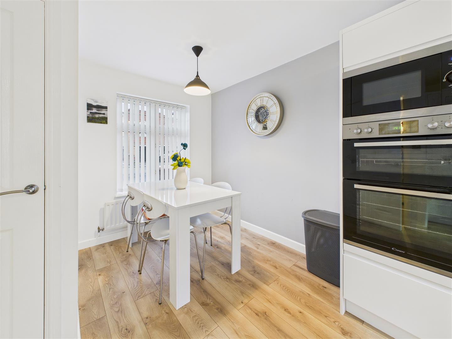 Living Kitchen With Dining Area - 5.38m x 4.04m approx (17'8" x 13'3" approx) - reducing to 7'0" approx. With contemporary styled gloss fronted base and wall units with laminate worktops incorporating a one and a half bowl sink and drainer with feature mier tap plus a host of integtraated appliances comprising a double oven, microwave, ceramic hob with splashback and feature filter hood over, dishwasher, fridge and freezer. There is plumbing for a washing machine, cupboard housing the gas combination boiler, laminate flooring and door to the rear garden. This twin aspect room has windows to both front and rear, TV point and useful understairs storage cupboard.
