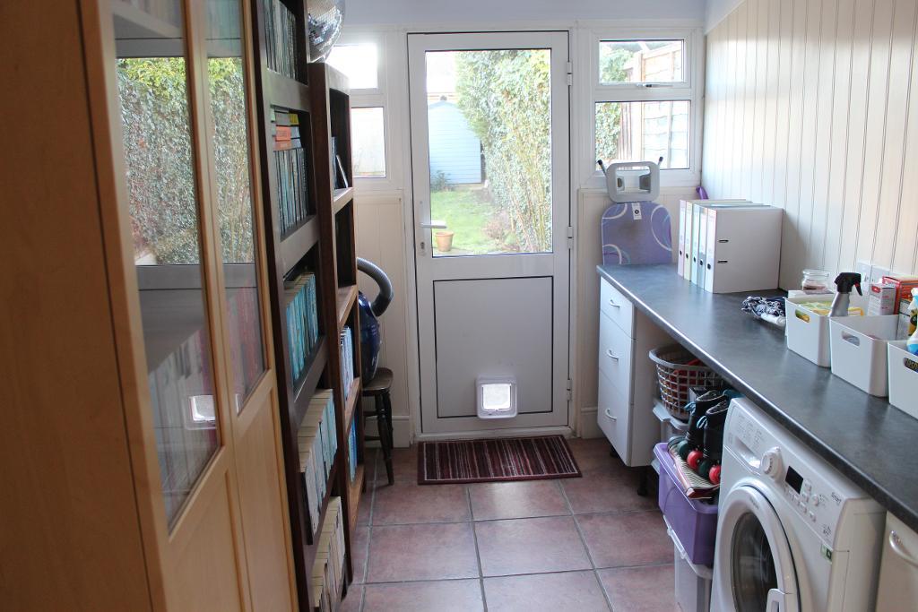 13"5 (to understairs) X 9"1: Double glazed window and half glazed double glazed door to utility room / lean-to. Range of base and eye level units with granite effect worktop over and tiled splash back. One and half bowl stainless steel sink unit and cooker point with stainless steel extractor fan over. Fitted unit under stairs, carpeted stairs to first floor with spindled balustrade, radiator, coving, power points and doors to: