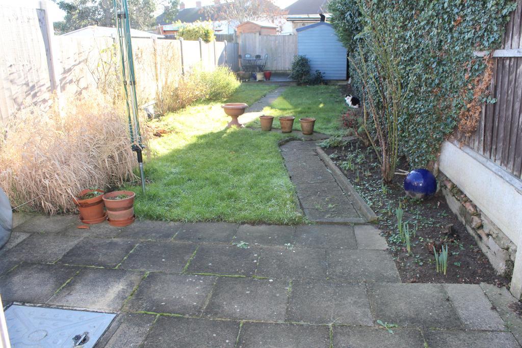 Approximately 65" Southerly facing. Paved patio, remainder laid to lawn with established shrub borders and further patio at rear housing wooden shed which is to remain.