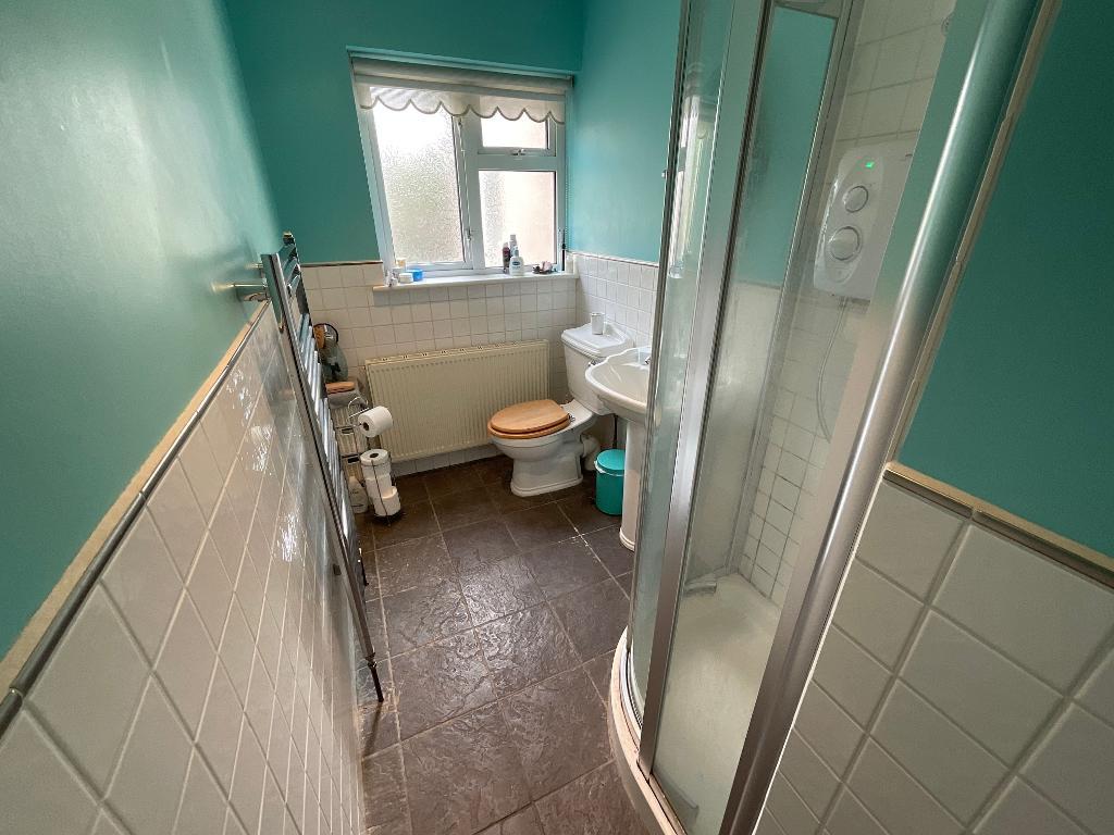 The bathroom is an idyllic space and has fully tiled flooring and part painted, part tiled walls. There is then a shower cubicle to the side which has an electric 'Mira' shower unit along with a WC and sink. All of this is finished off with an obscured glass double glazed window to the rear.