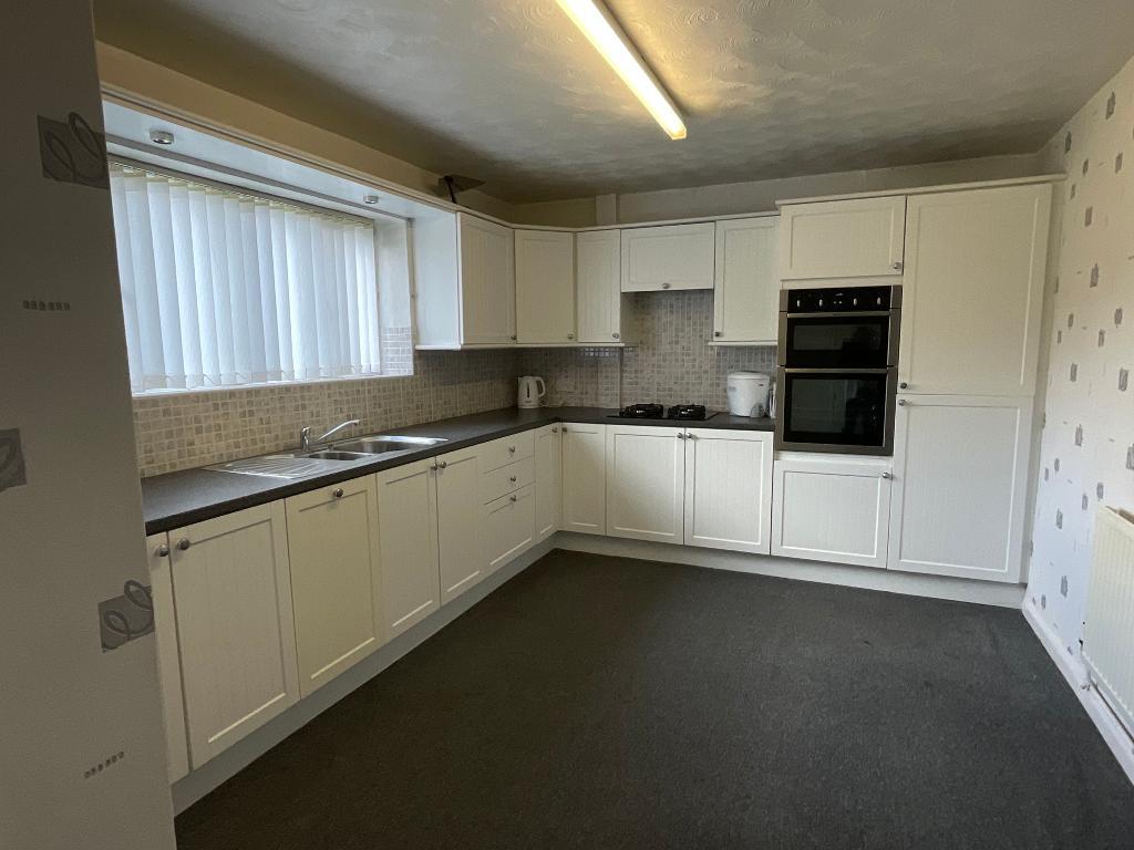 The kitchen is also a great and features a range of eye and base level fitted wooden units with black marble effect worktops. There is a stainless-steel sink which has mixer tap along with a fitted oven hob and extractor fan. The flow of natural light is continued by a double-glazed window to the rear. To complete the space there is an integrated fridge freezer, carpeted flooring and a glass panelled door that leads onto the ground floor WC. There is also a further door to side that leads into a space that can be used for a utility space.