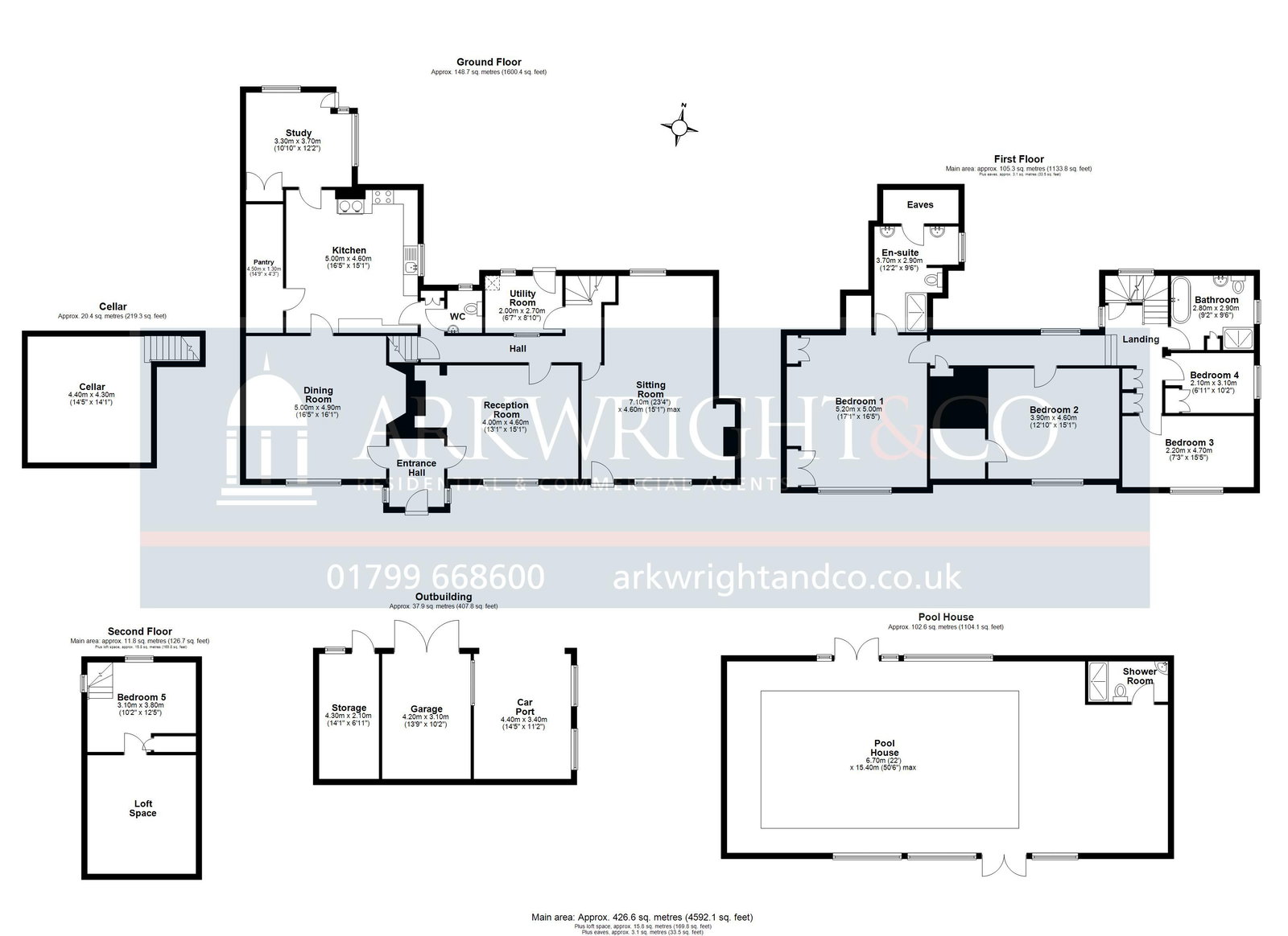 - Impressive leisure & outbuildings, comprising a large, detached pool house, a versatile garage and double carport, and a substantial cellar providing extensive storage or hobby space