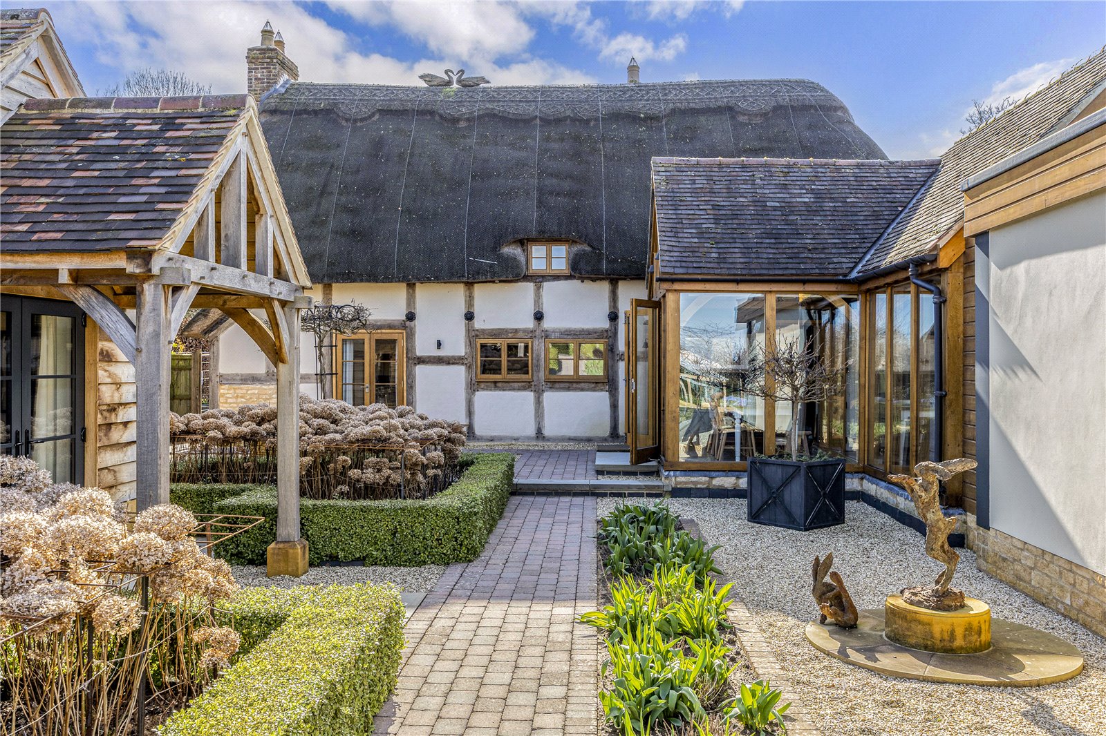 The gardens and grounds have been carefully landscaped to complement the cottage. A generous sandstone terrace adjoins the house, perfect for dining and entertaining, leading to manicured lawns and an elegant formal water rill