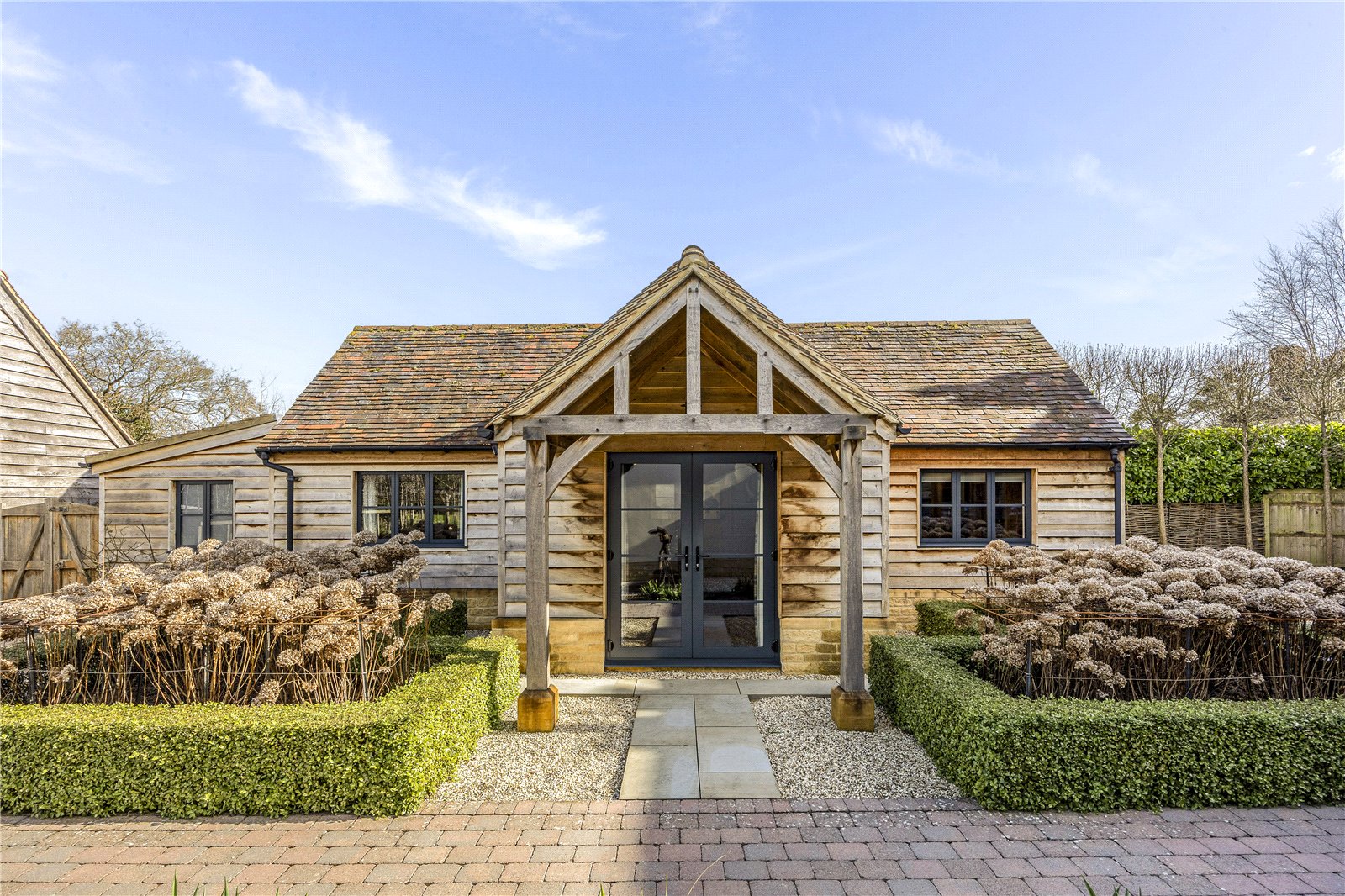 The Bat House, a detached annexe, provides versatile self-contained accommodation. It comprises a living area wiht kitchenette, a double bedroom with built-in storage and an en-suite shower room, ideal for guests, multi generational living, or a home office, while remaining closely connected to the main house and grounds.