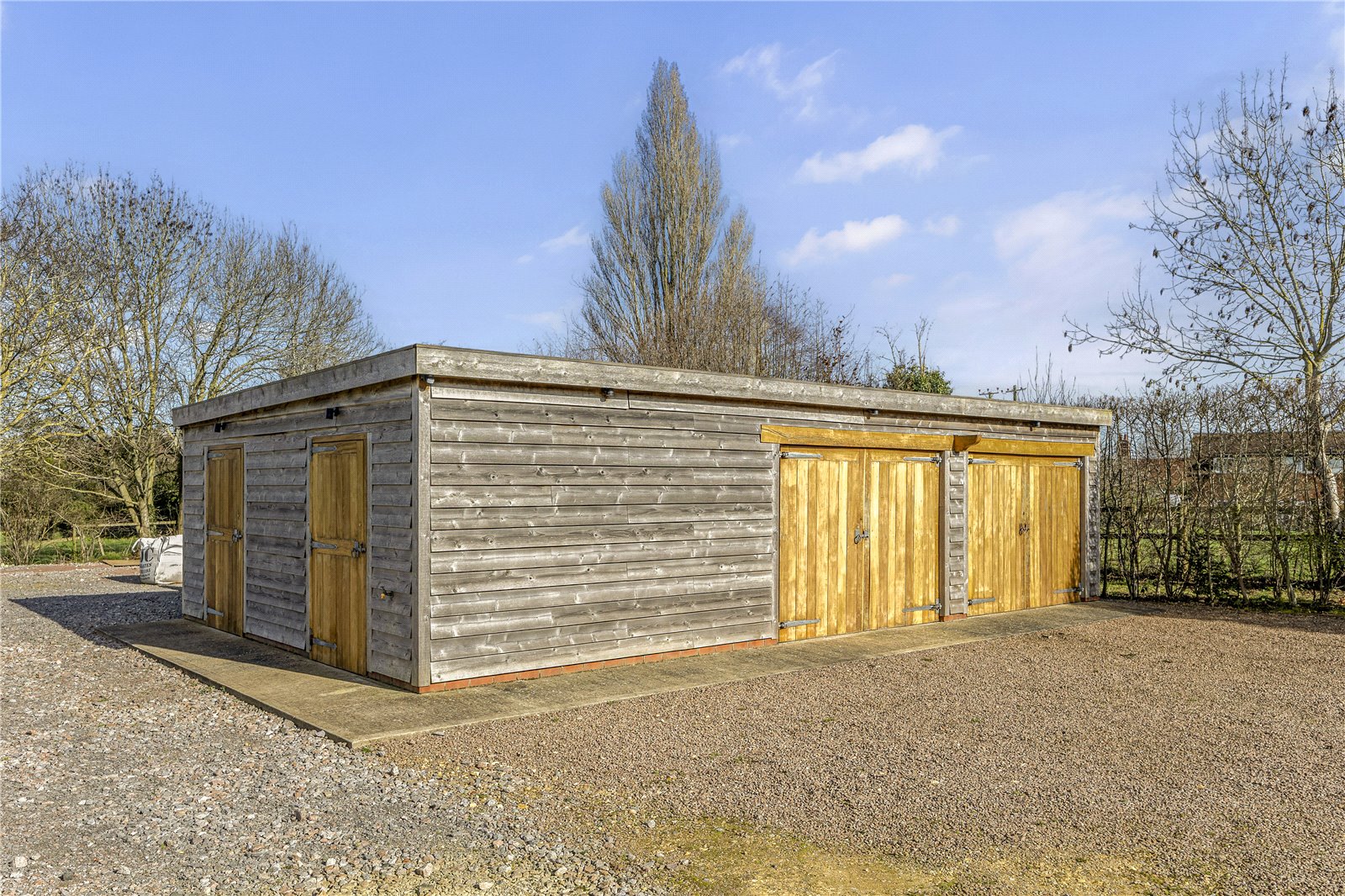 There is garaging for 2 cars, as well as outbuildings offering storage and a WC. Part way along the driveway is a double carbarn providing sheltered off-road parking, with an EV charger.