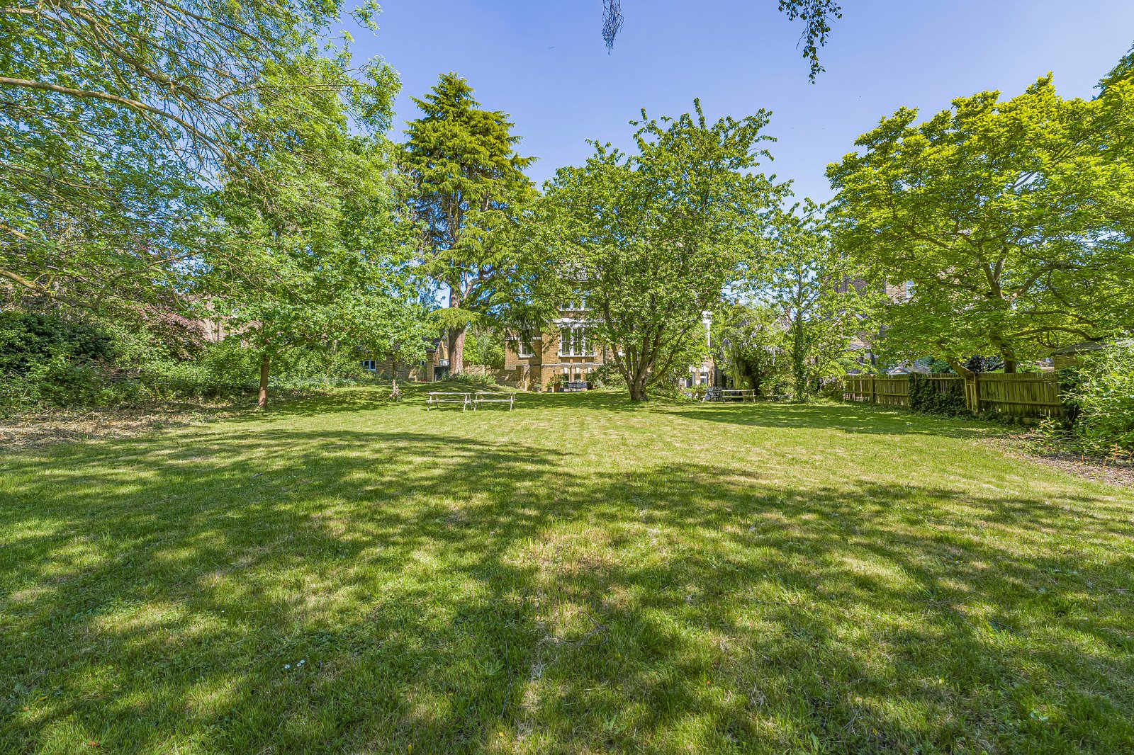 Beyond the residence itself, the grounds are nothing short of breathtaking. A vast, beautifully maintained garden measuring approximately 173 x 114 meters extends towards the historic backdrop of Eltham Palace’s grounds, offering uninterrupted views of lush greenery and grazing horses. The setting evokes the tranquillity of the English countryside, all while being within easy reach of central London.