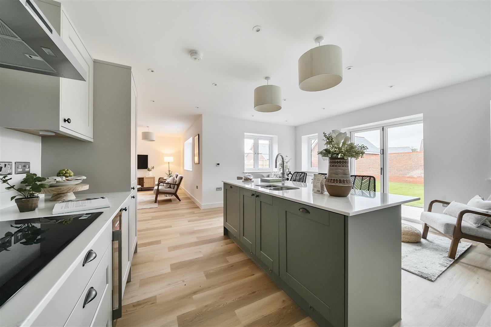 Plot 1 offers a spacious open plan kitchen/dining/living room with bi-fold doors opening onto the rear garden whilst the kitchen benefits from fitted wall and base units with stone worktops and matching upstand and integrated appliances to include Bosch single oven and induction hob, integrated washer dryer, Indesit dishwasher and fridge/freezer, 30 cm Caple Wine Cooler and Quooker Hot Tap. The master bedroom enjoys an en-suite shower room and there is also a family bathroom. The garden benefits from a paved patio area, an external tap, there is also a single garage and parking.