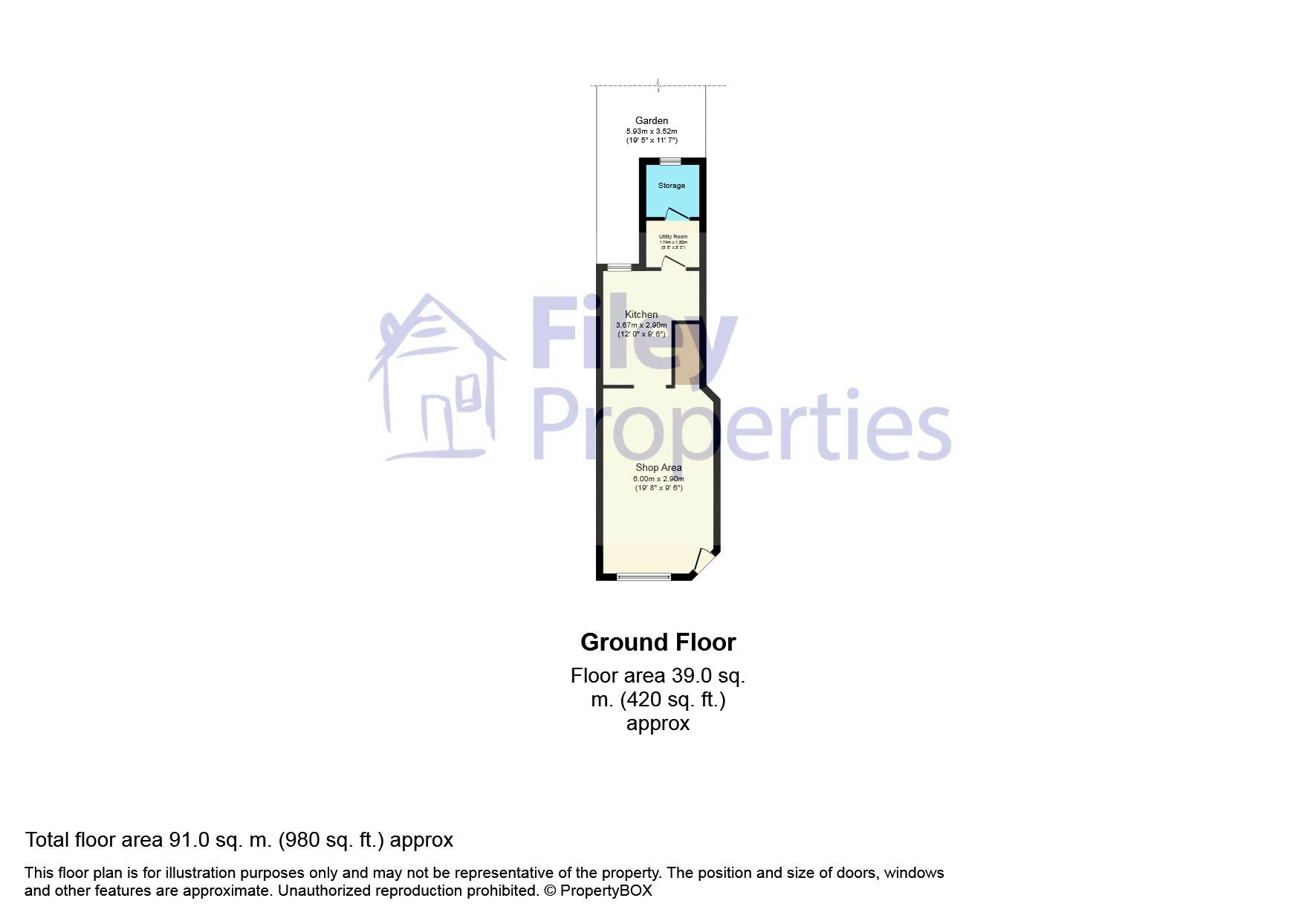 Rear Shop Garden – 8.53m x 4.50m = 38.39m2 / 413 sqft