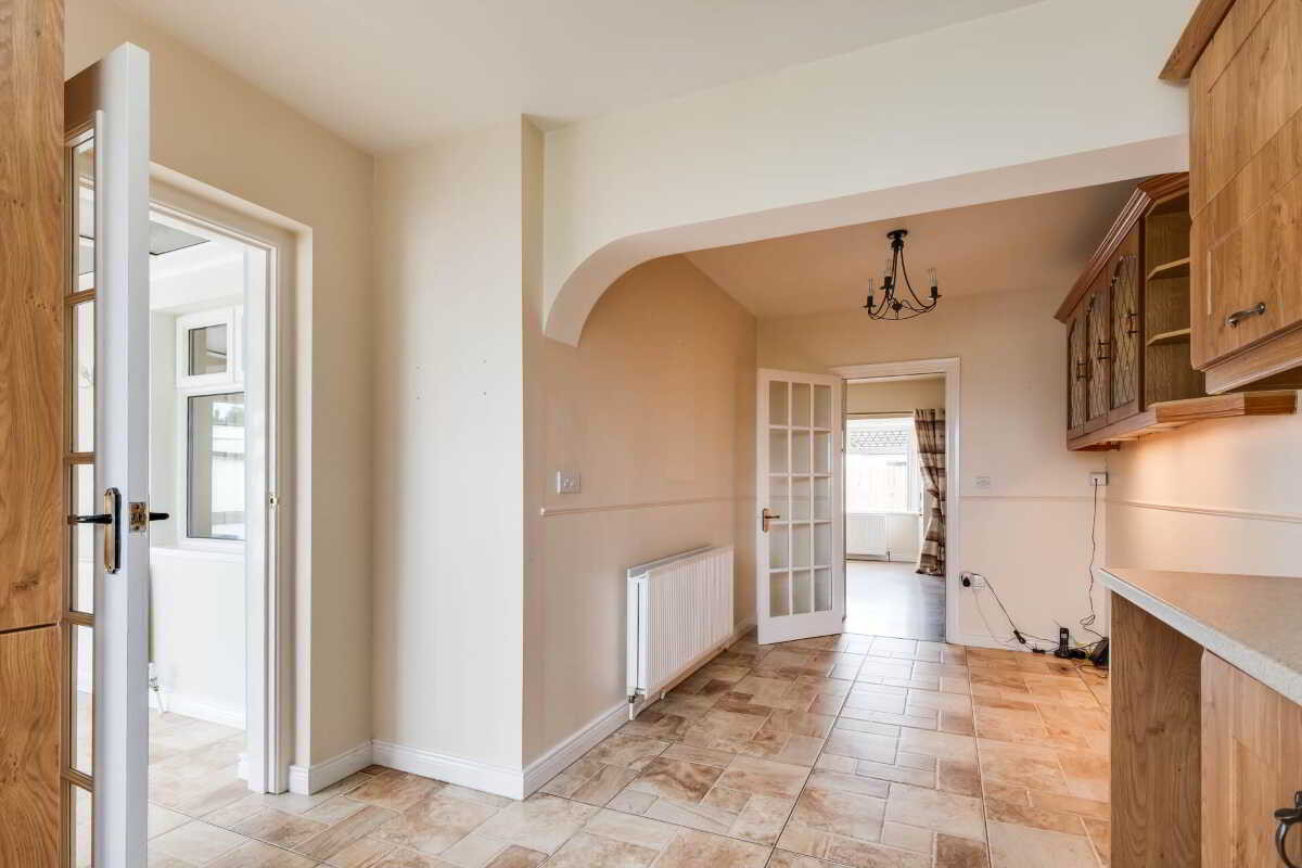 Tiled floor, open plan to Kitchen, glazed door to Lounge.