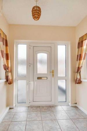 PVC exterior door with glazed inset, tiled floor.