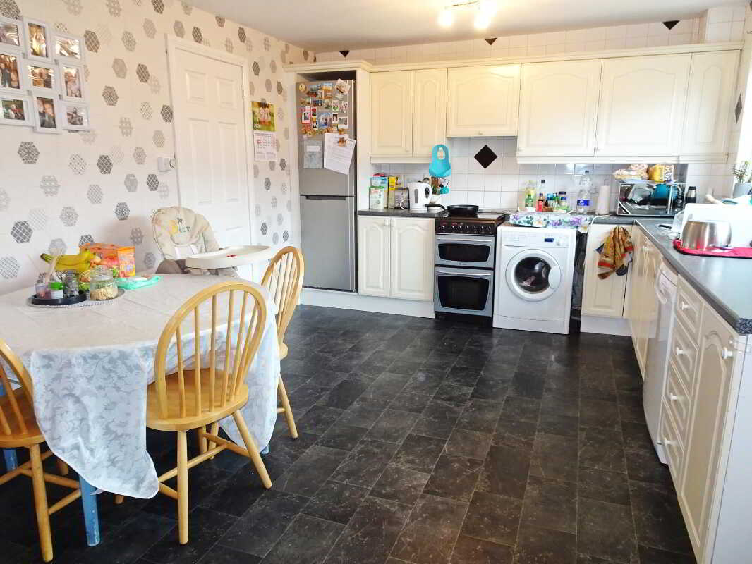 Excellent range of fitted high and low level units, s.s. sink unit, extractor fan hood plumbed for washing machine, & dishwasher tiled floor and splash back, walk in cupboard.
