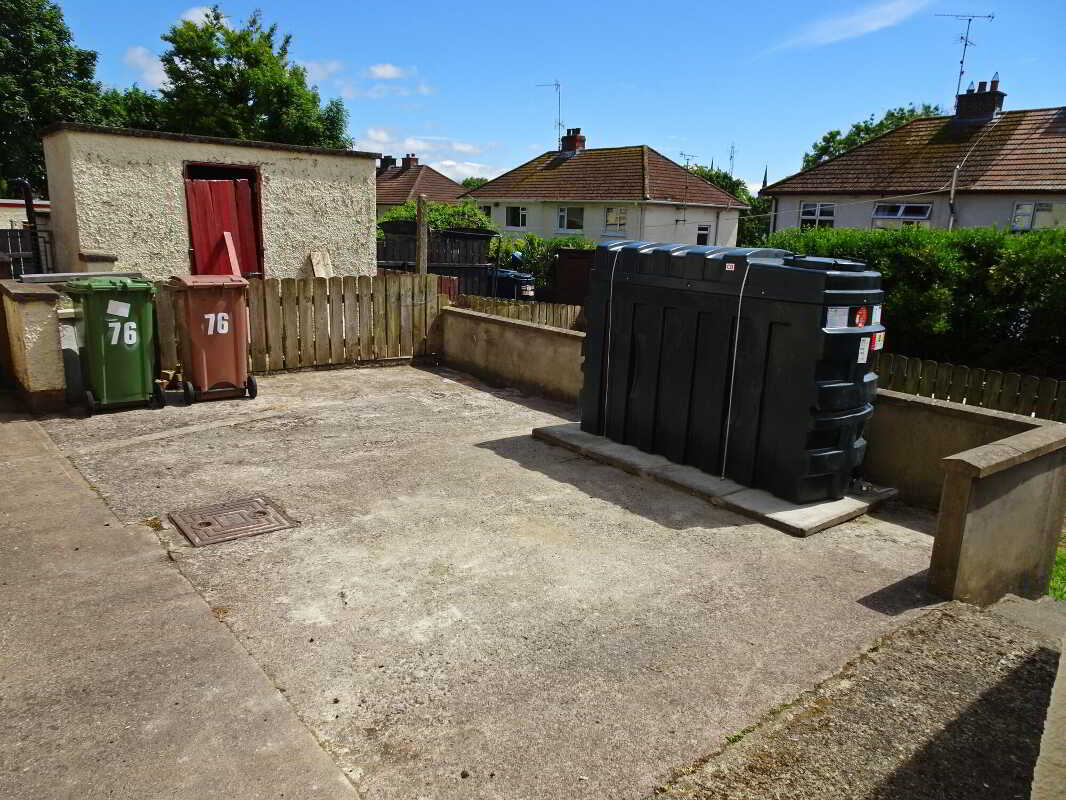 Enclosed garden to rear raised concrete yard & lawn, lawn to front.