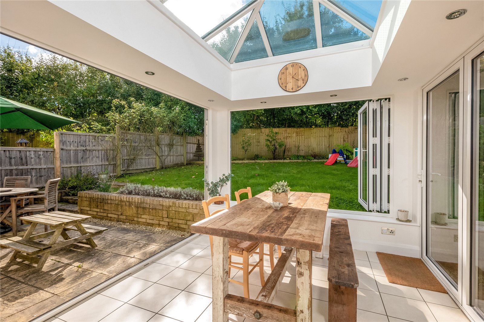 The rear garden has a south facing aspect, fully laid to lawn, and landscaped by the current owners, with a terrace seating area. Gated access to the front of the house which parking area for two cars.