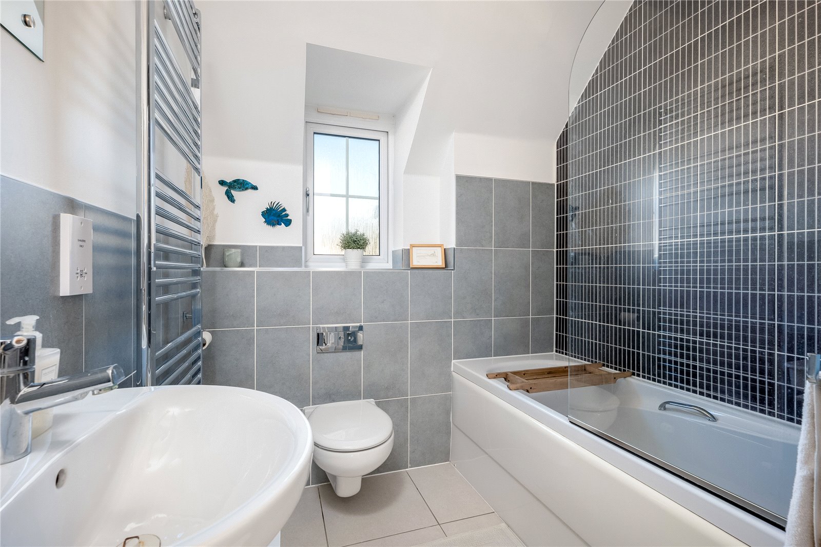 Bathroom Double glazed window to front aspect, panelled bath, low level WC, hand wash basin.