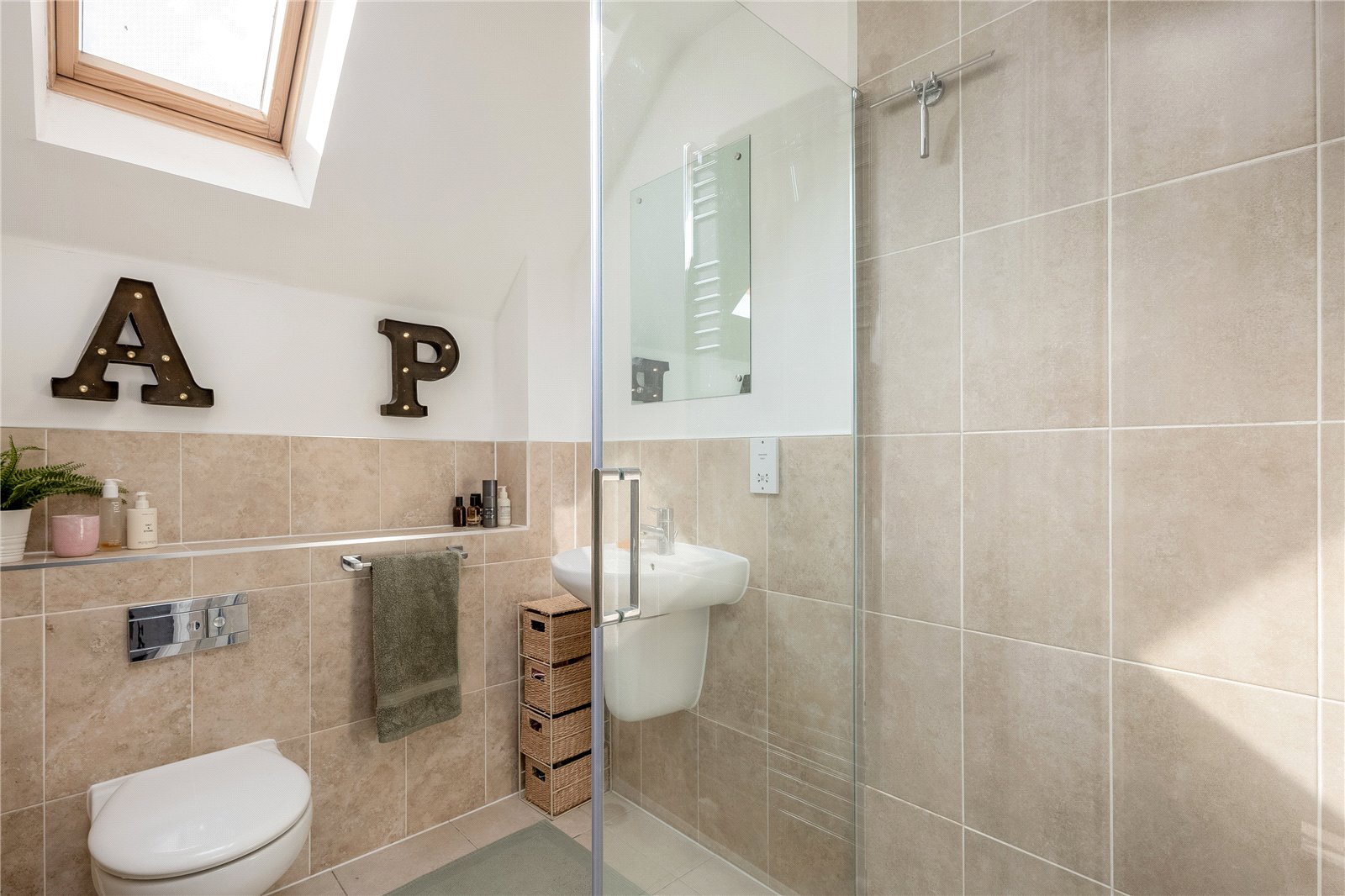 En-suite Shower Room Newly fitted walk-in shower, tiled floor, low level WC, hand wash basin, Velux window.
