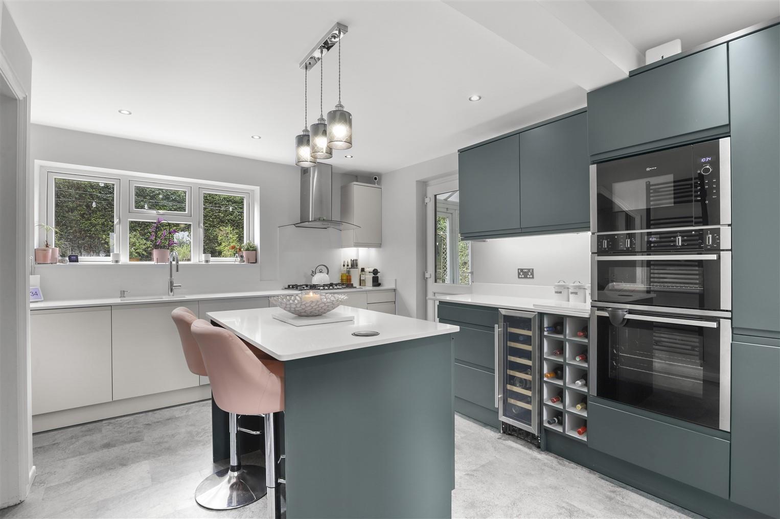 Upon entering, you are greeted by a welcoming hallway that leads to a fully integrated contemporary kitchen/breakfast room, complete with a central island, Quooker hot tap, and water softner, perfect for casual dining and entertaining. The spacious lounge features a delightful fireplace, creating a warm and inviting atmosphere, plus a conservatory/dining room with doors that open directly onto the rear garden, seamlessly connecting indoor and outdoor spaces.