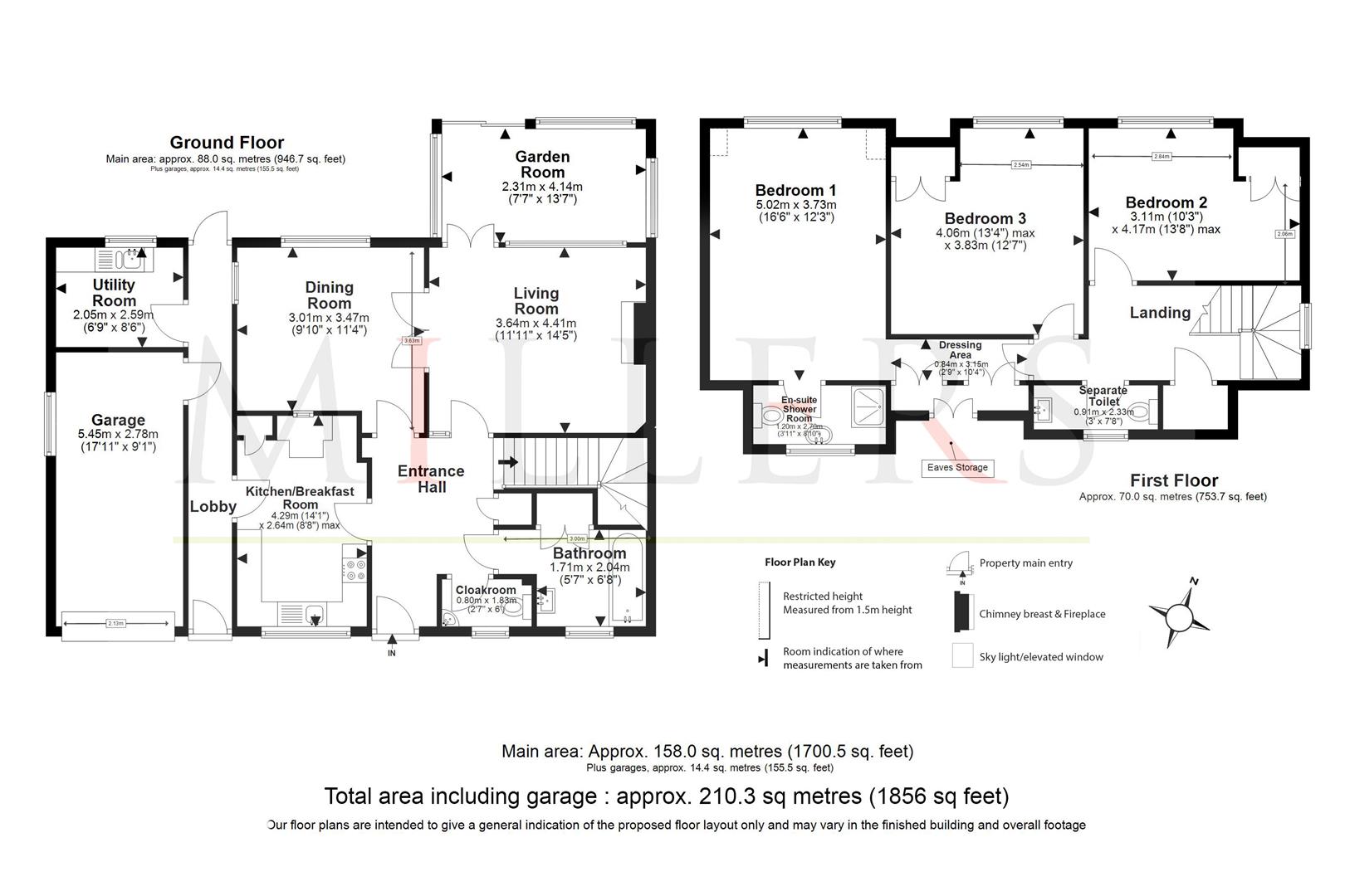 The first floor landing features another cloakroom and a built-in store cupboard. The master bedroom is a true retreat, complete with a dressing area and an ensuite shower room. Two further generously sized double bedrooms provide comfortable accommodation for family or guests.