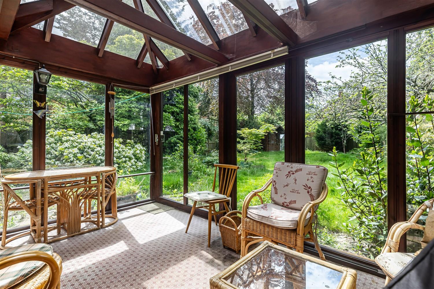 Outside, the property is surrounded by an extensive front garden, adorned with a lush lawn, mature trees, and shrub borders. The large driveway accommodates two vehicles, complemented by a carport and side access to the rear garden. The superb south-facing rear garden is a haven for outdoor enthusiasts, featuring a patio area, a spacious lawn, a greenhouse, and a timber garden shed, all framed by an array of trees, shrubs, and hedges.