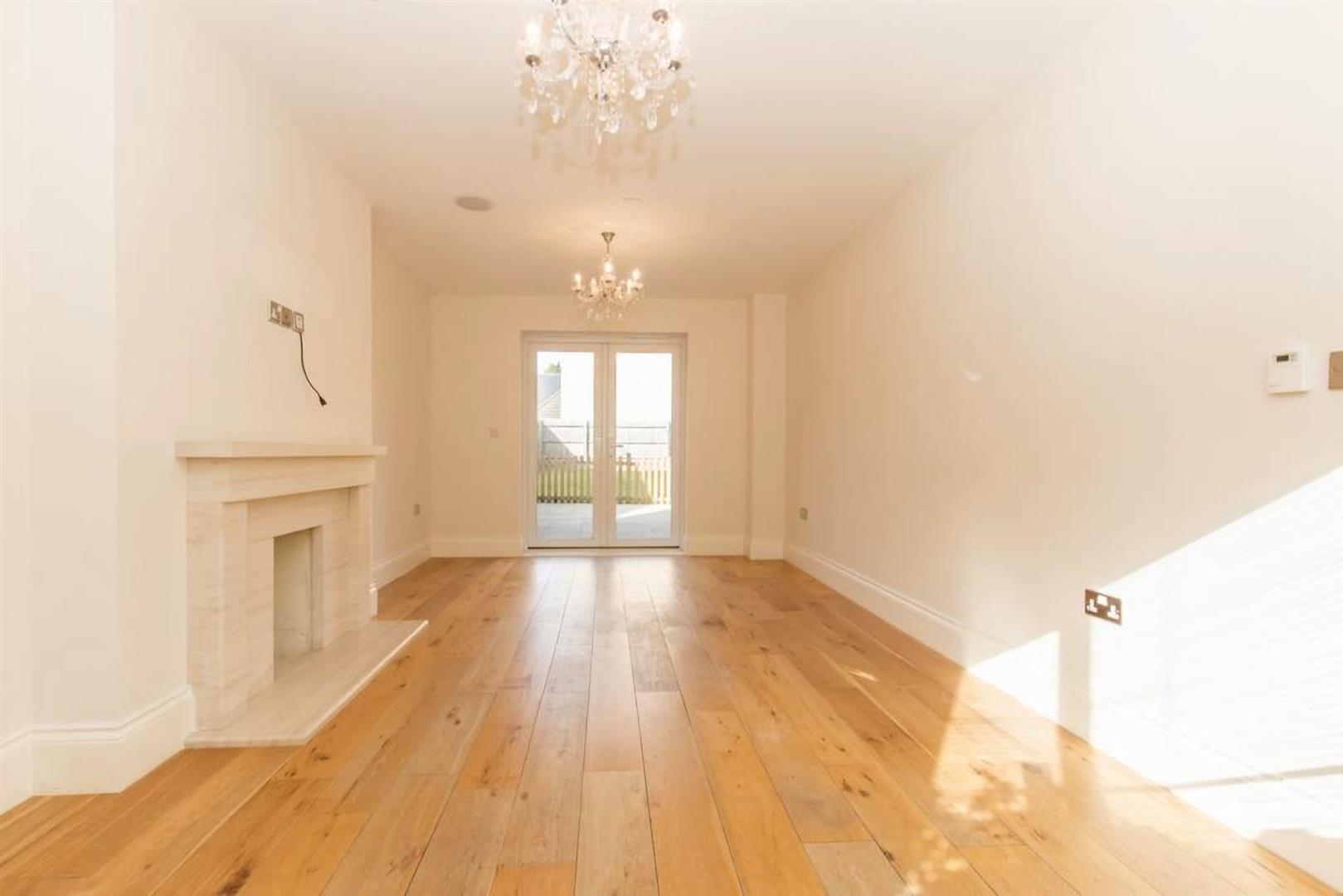 Stepping through the centrally positioned front door, you are greeted by a spacious & welcoming entrance hall, with stairs rising to the first floor & access to a practical cloakroom WC. The main living room is both stylish & inviting, with a striking fireplace, integrated ceiling speakers and French doors that open directly onto the garden, perfect for relaxing with family or entertaining guests.