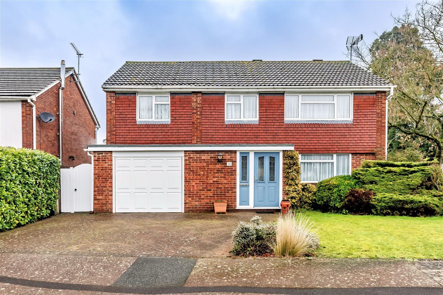 Outside, the front garden is attractively laid to lawn with mature shrubs and borders, while a private driveway provides off-street parking and leads to the integral garage. Side access opens to the generous rear garden, which is mainly laid to lawn and framed by established trees, flowers, and shrubs, with a patio area perfect for outdoor entertaining.