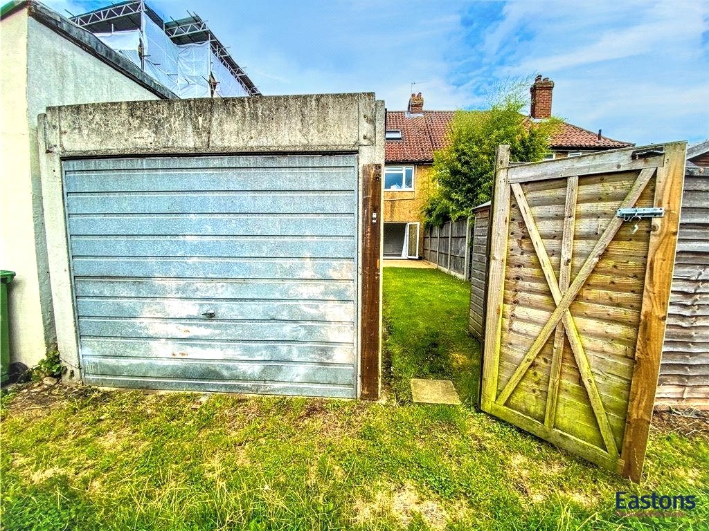 A particular highlight of the property is the private, south-facing garden, featuring a patio area with the remainder laid to lawn. The property also includes a detached garage with an up-and-over door, although vehicle access is restricted.