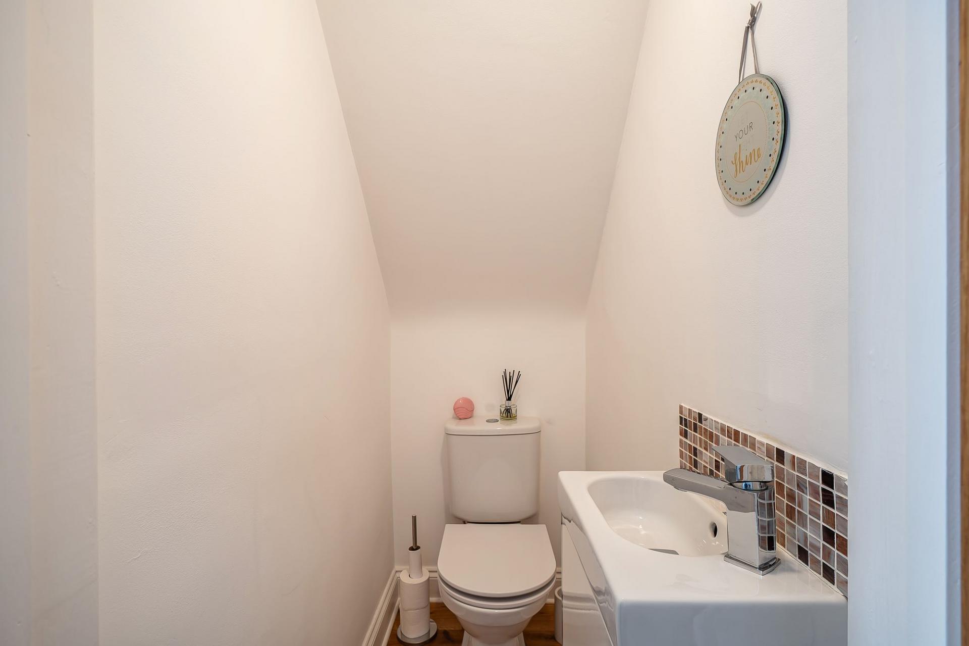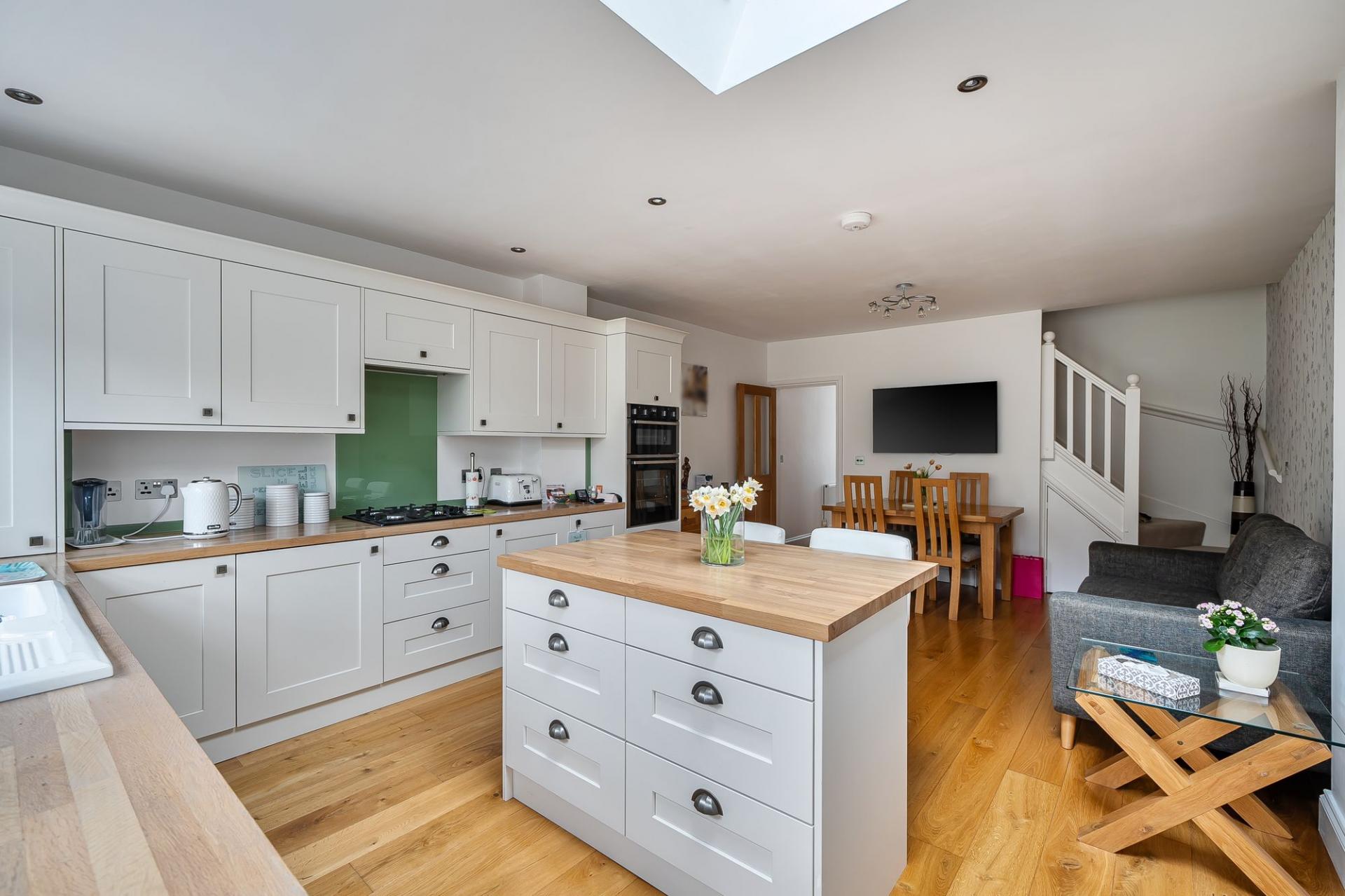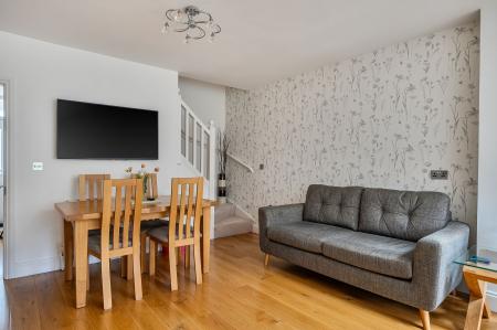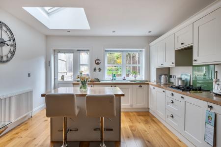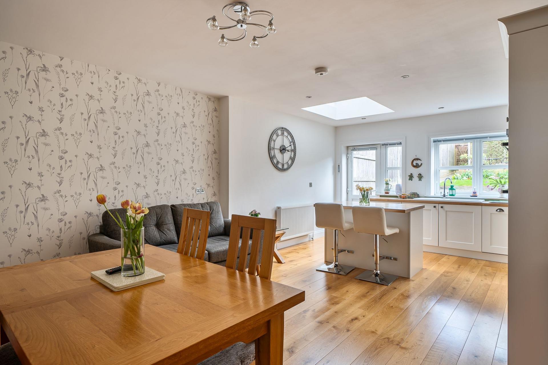 The property opens into an entrance hall leading through to a bright and inviting sitting room, ideal for both relaxing and entertaining. To the rear, a generous open-plan kitchen and dining area has been carefully designed to suit both everyday living and more formal occasions. A ground floor W.C. provides added convenience.