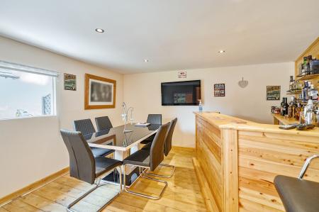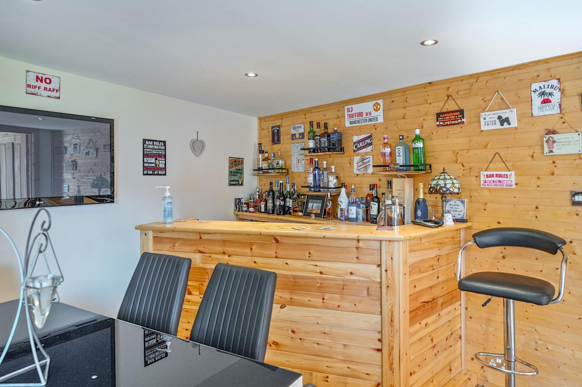 The rear garden is a private oasis, featuring a spacious wooden cabin with bar, perfect for outdoor entertaining, and an easy-to-maintain astro turf lawn, offering a green and tranquil setting for relaxation. Furthermore, the property boasts off-street parking for 3-4 cars, ensuring that residents have ample space for vehicles and guest parking.