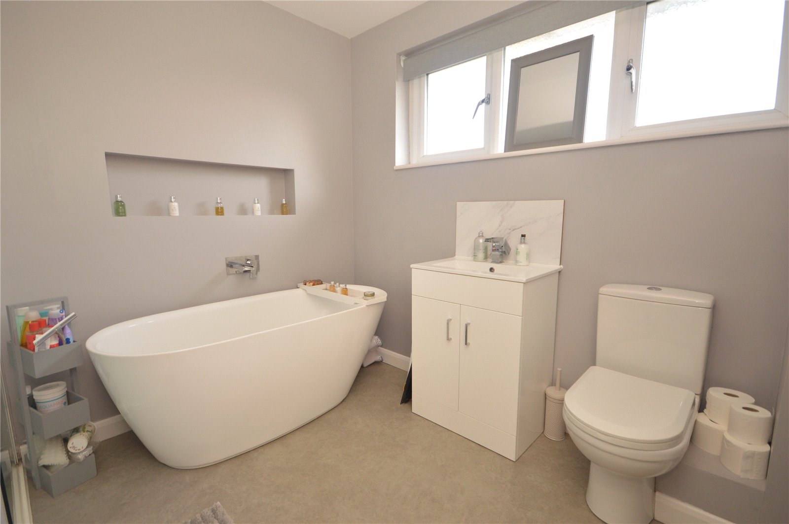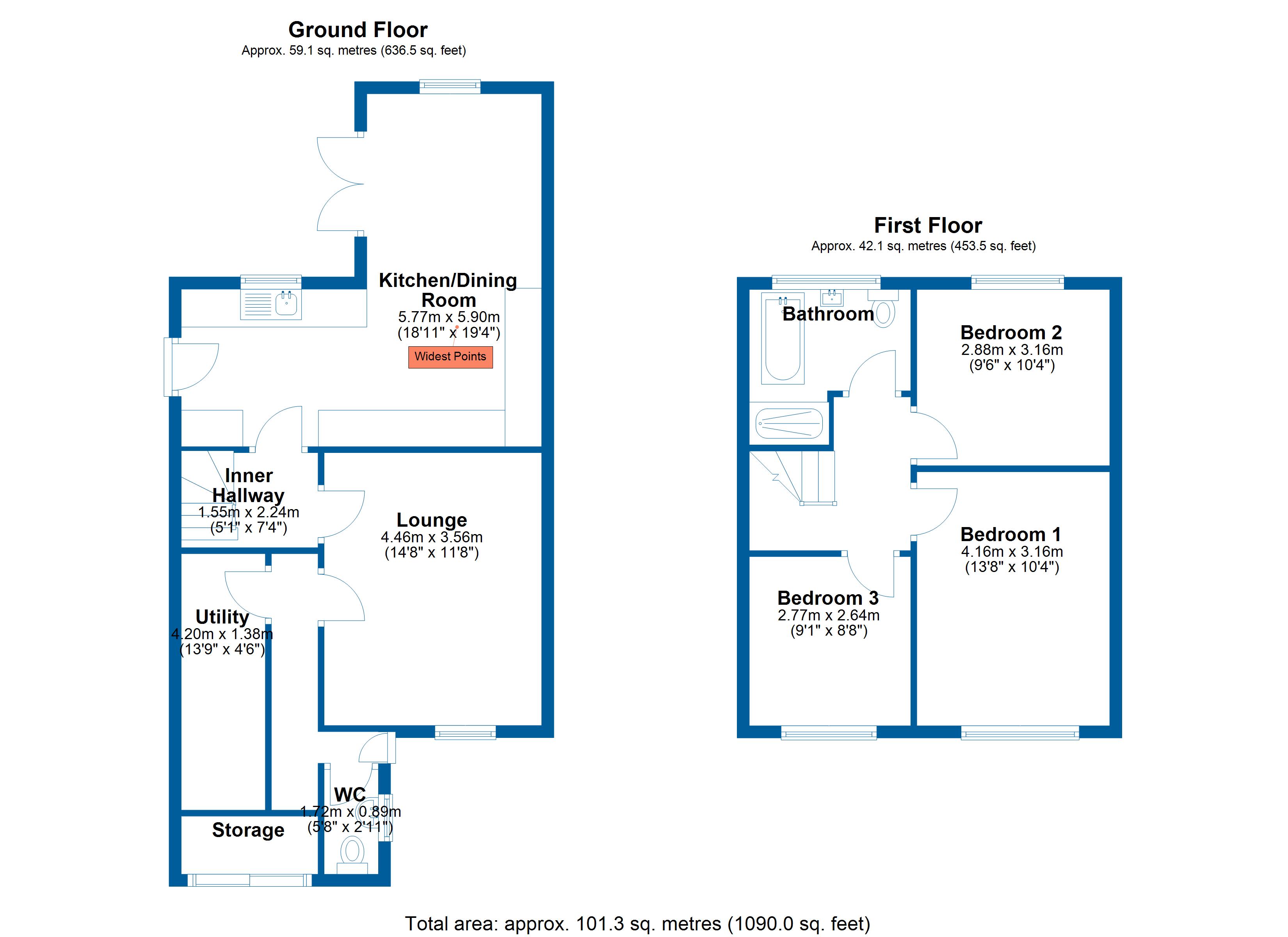 Stairs rise to the first floor where you'll find three generous sized bedrooms and a family bathroom to match. The master bedroom and bedroom 3 are both set to the front with bedroom 2 and the bathroom set to the rear. The bathroom enjoys a 4-piece suite including a standalone bath, wash hand basin and loo with a separate walk in shower.