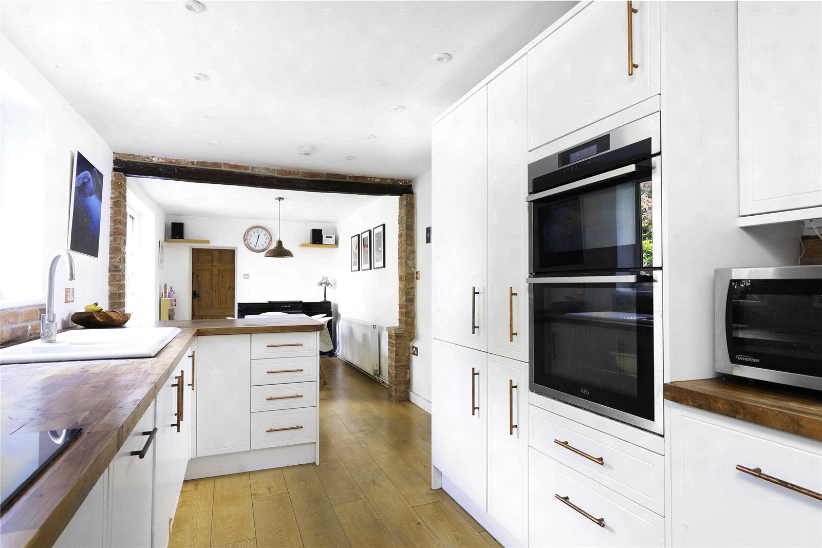 To the rear is a generous kitchen dining room with a comprehensive range of cupboards and appliances as well as space for a large dining table and sliding doors to the rear garden.